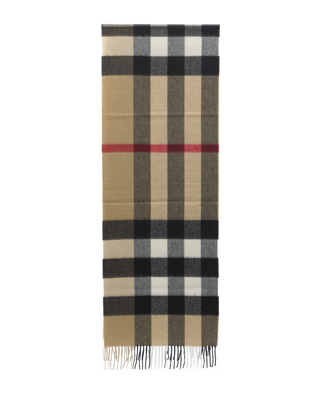 Cashmere scarf with all-over Mega Check motif. Fringed hems. Dimensions: 200x36cm