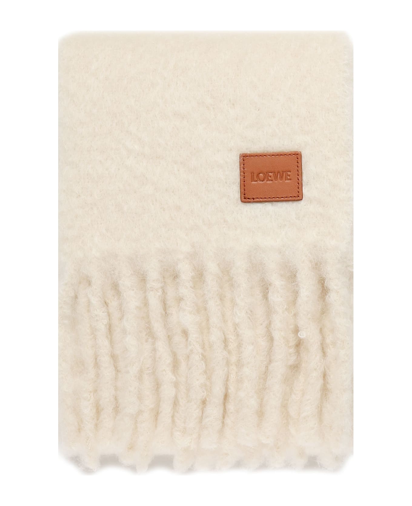 -Blend black mohair and wool scarf -Leather-colored leather Loewe patch -Frayed edges -Measurements: 23 x 185 cm -Made in Italy -Color: Black