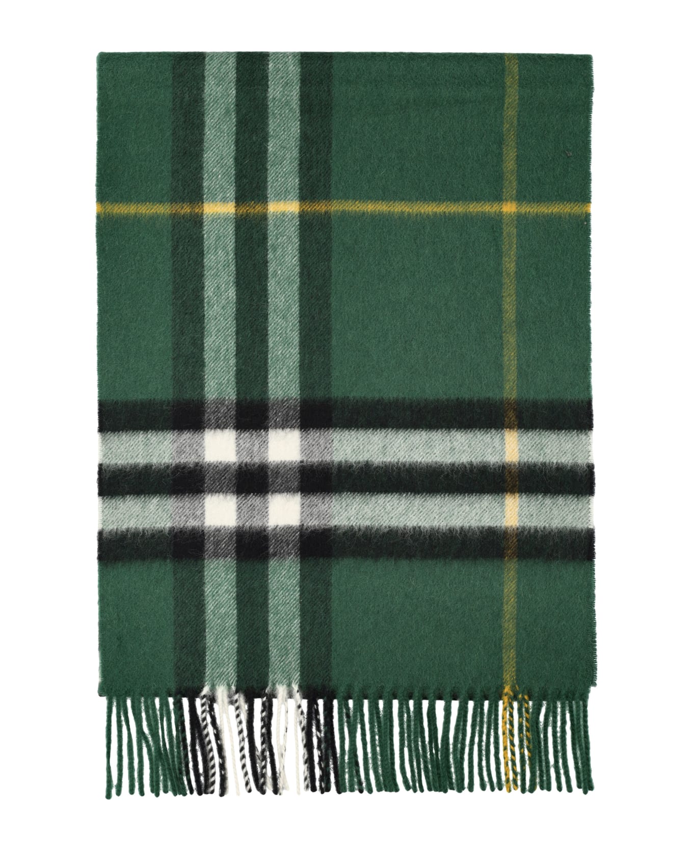 Mu Giant Check Scarf By Burberry London. Featuring: Cashmere Fabric Forest Green With Classic Check Pattern Fringed Ends