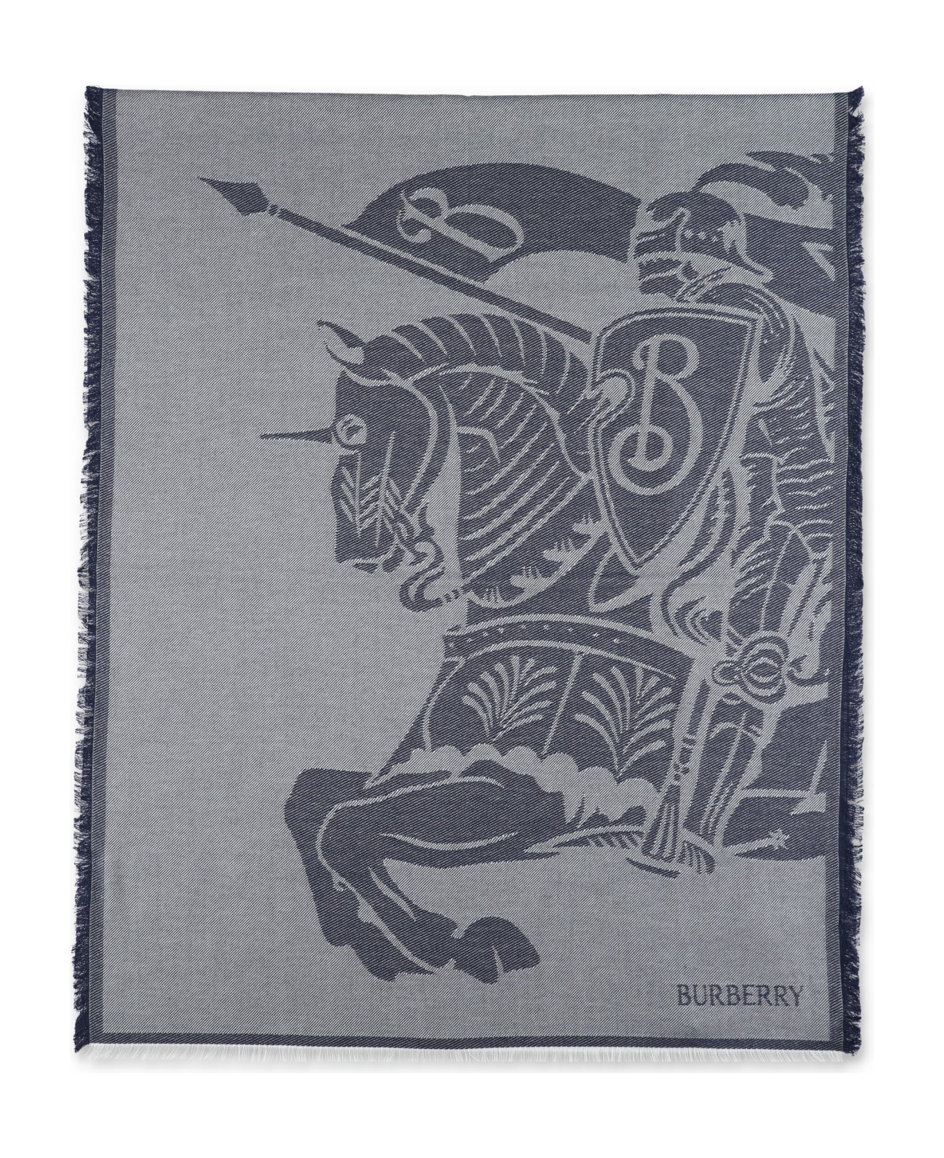 Mu Lg Knight Scarf By Burberry London. Featuring: Wool-silk Blend Fabric Jacquard Equestrian Knight Logo Design Fringed Edges