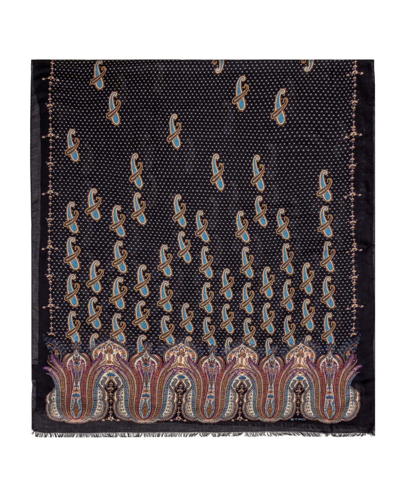 Blue Paisley scarf. Fringes on the bottom. Composition: Outside: 90% Modal, 10% Cashmere
