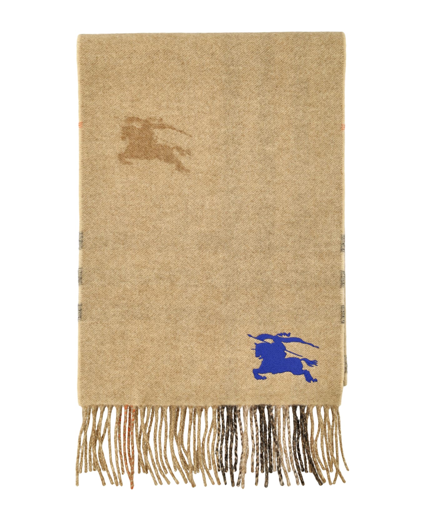 Reversible Check Cashmere Scarf By Burberry London. Featuring: Fringing At Both Ends The Reversible Design Switches From The Burberry Check To A Solid Colour Embroidered With The Equestrian Knight Design Length: 168 Cm Width: 30 Cm