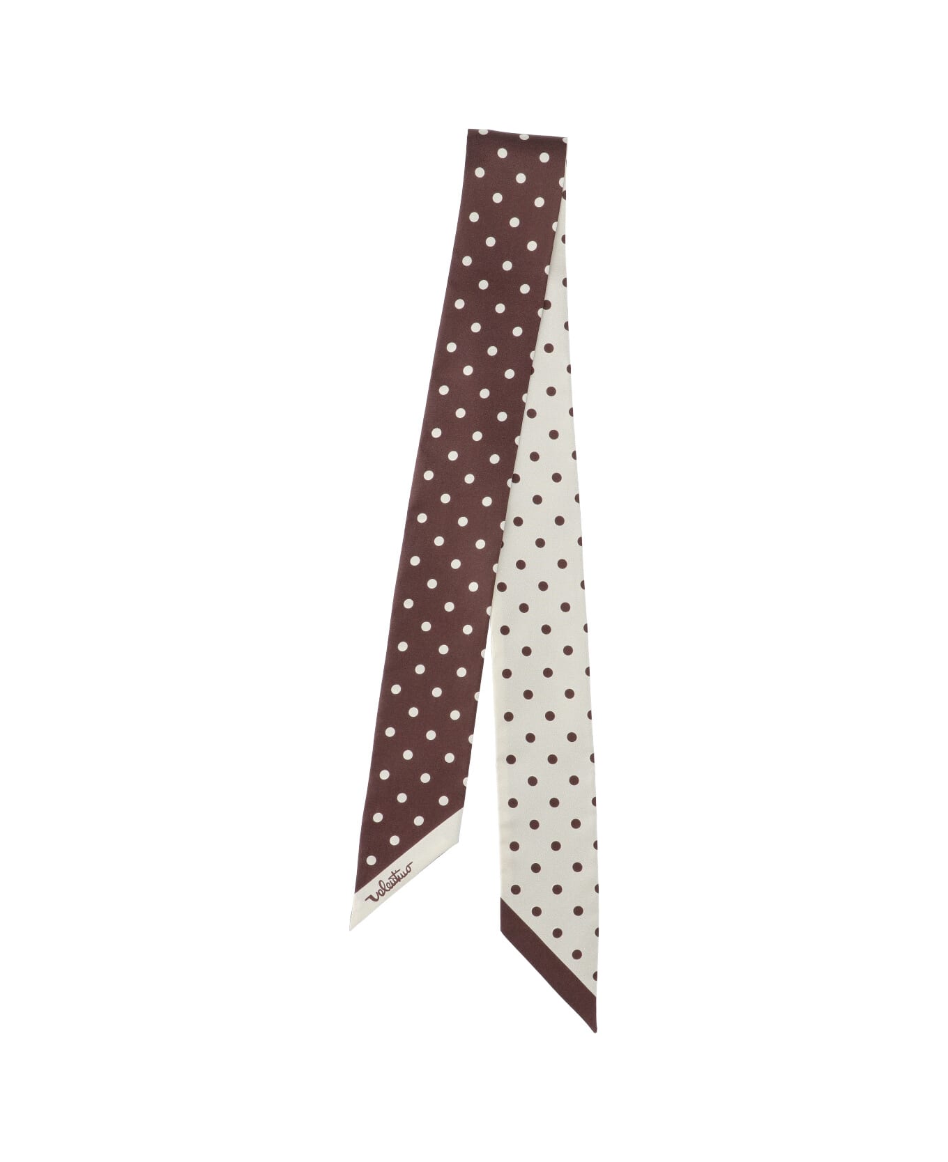 Valentino Garavani brown silk scarf with all-over polka dot pattern, logo printed on the edges. Composition: 100% Silk