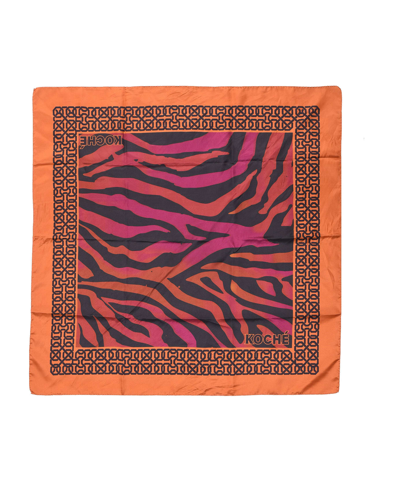 KOCHÉ orange/pink scarf is crafted in Italy from soft viscose and illustrated with the tiger print. MADE IN ITALY 100% viscose Composition: 100% Viscose-rayon