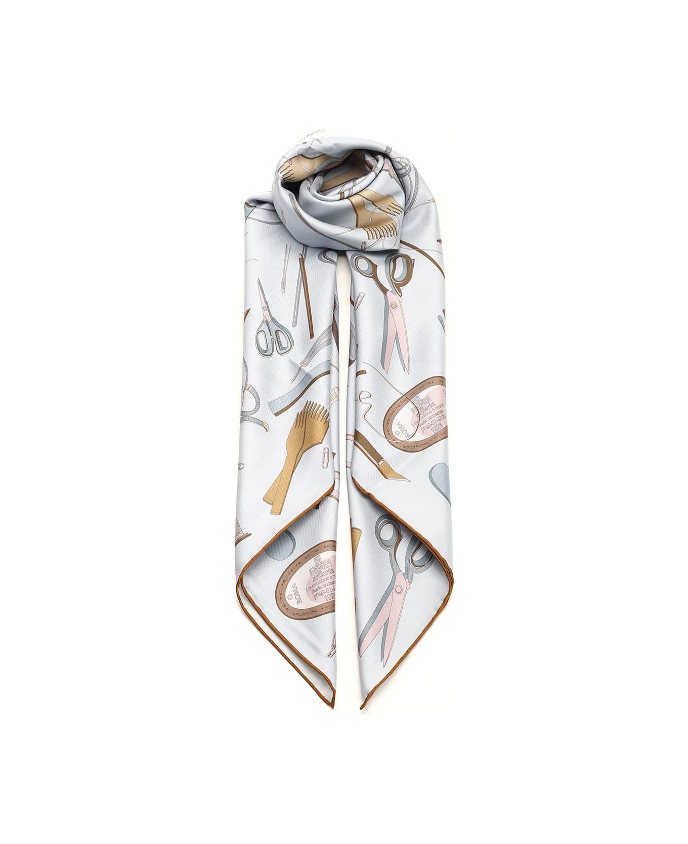 Square scarf made of silk twill from Fendi. The motif celebrates the iconic Peekaboo bag surrounded by all the elements that compose it and tell the craftsmanship behind its creation. Composition: 100%SE