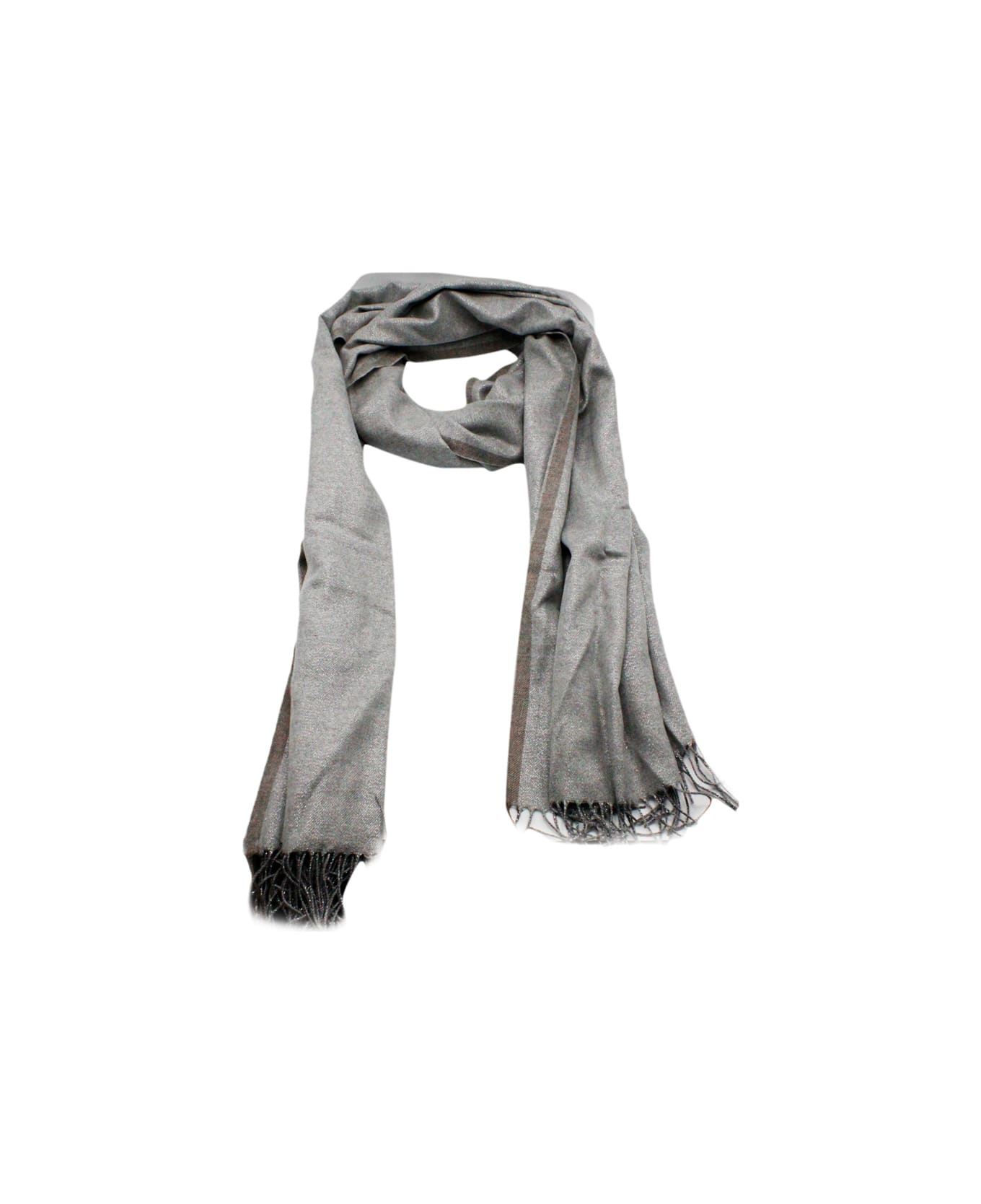 wide silk scarf with lamé thread and tone-on-tone fringes at the bottom. size 75 x 225 cm Composition: 74% Silk, 20% Viscose, 6% Polyester Composition: 74% Se, 20% Vi, 6% Pl