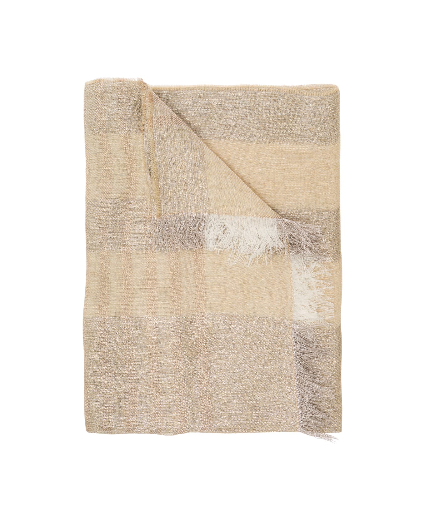 Scarf All-over check motif Fringed hem Beige Linen blend