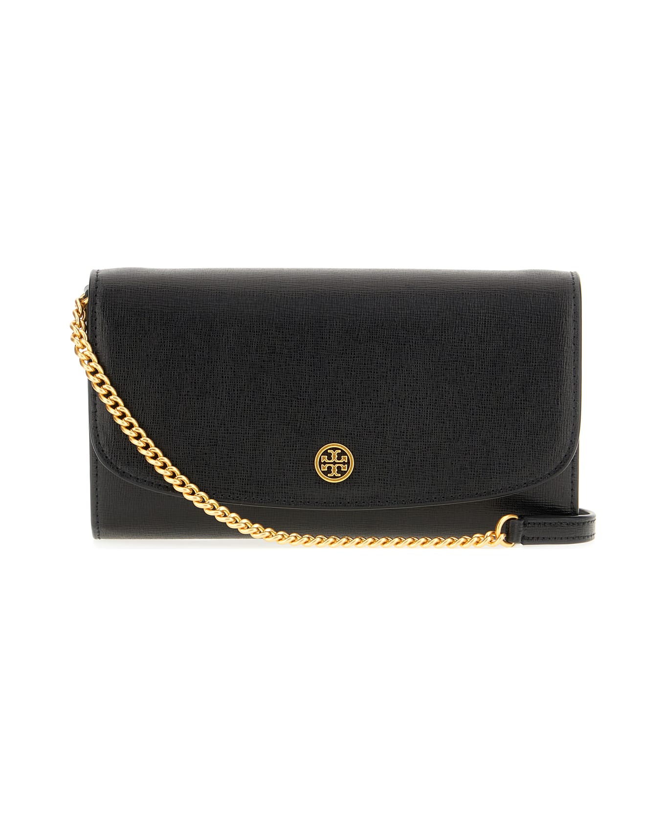 Wallet realized in grained calf leather enriched by metal Double T detail at the front. -Magnetic button closure under the flap -Adjustable detachable metal chain shoulder strap with tonal leather insert -Interior with two bill compartments, two slit pockets, a zip pocket and twelve credit card slots