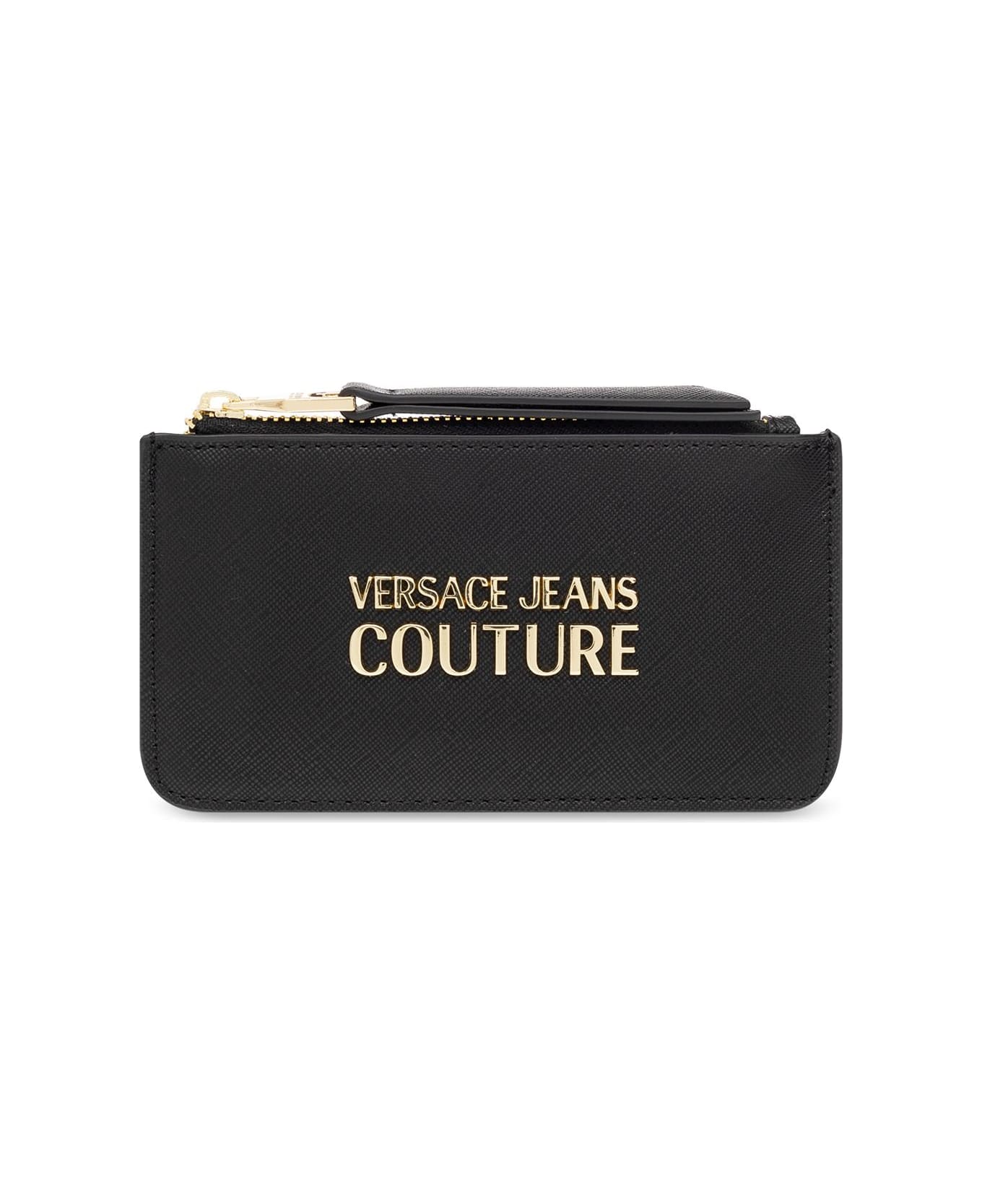 Black card case from Versace Jeans Couture. Made of faux leather, this item showcases a logo application, six slip pockets and one internal compartment with a zip fastening.