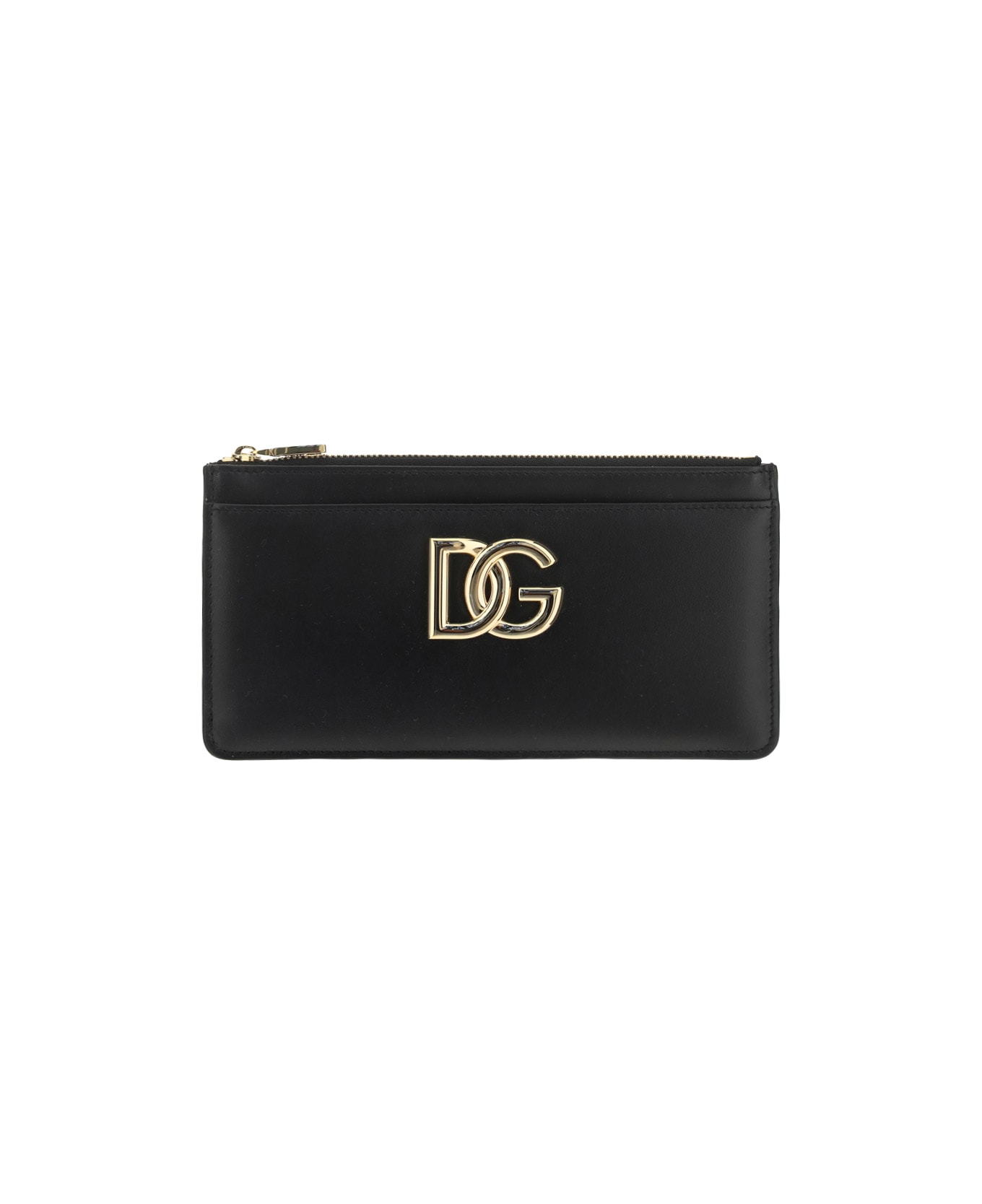 Calfskin card holder by dolce&gabbana, top zip fastening, plaque with iconic brand monogram embossed on the front and gold-plated, card slot on the back. Composition: 100% % Calf Leather Bos Taurus