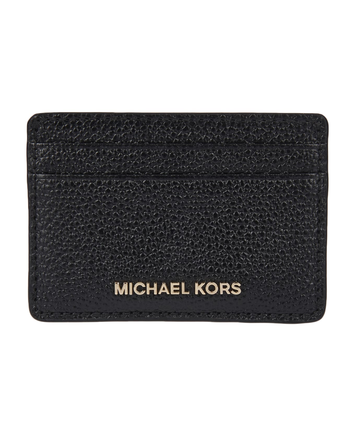 Black card holder. Gold-tone metal logo lettering. Dimensions: 9. 5 cm W X 7 cm H X 1. 9 cm D. Exterior details: 2 front credit card slots, 2 back credit card slots. Lining: 100% polyester. Composition: 100% leather. Made in Vietnam.