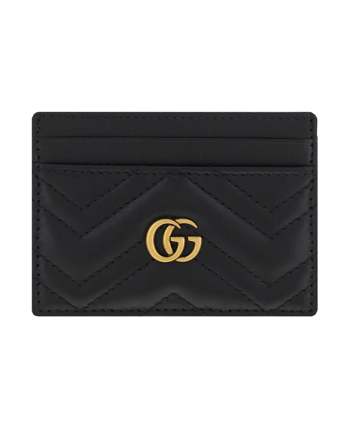 Calfskin card holder by gucci, gold gg logo plaque on front, card slots on front and back, matelassé leather print. Composition: 100% % Calf Leather Bos Taurus