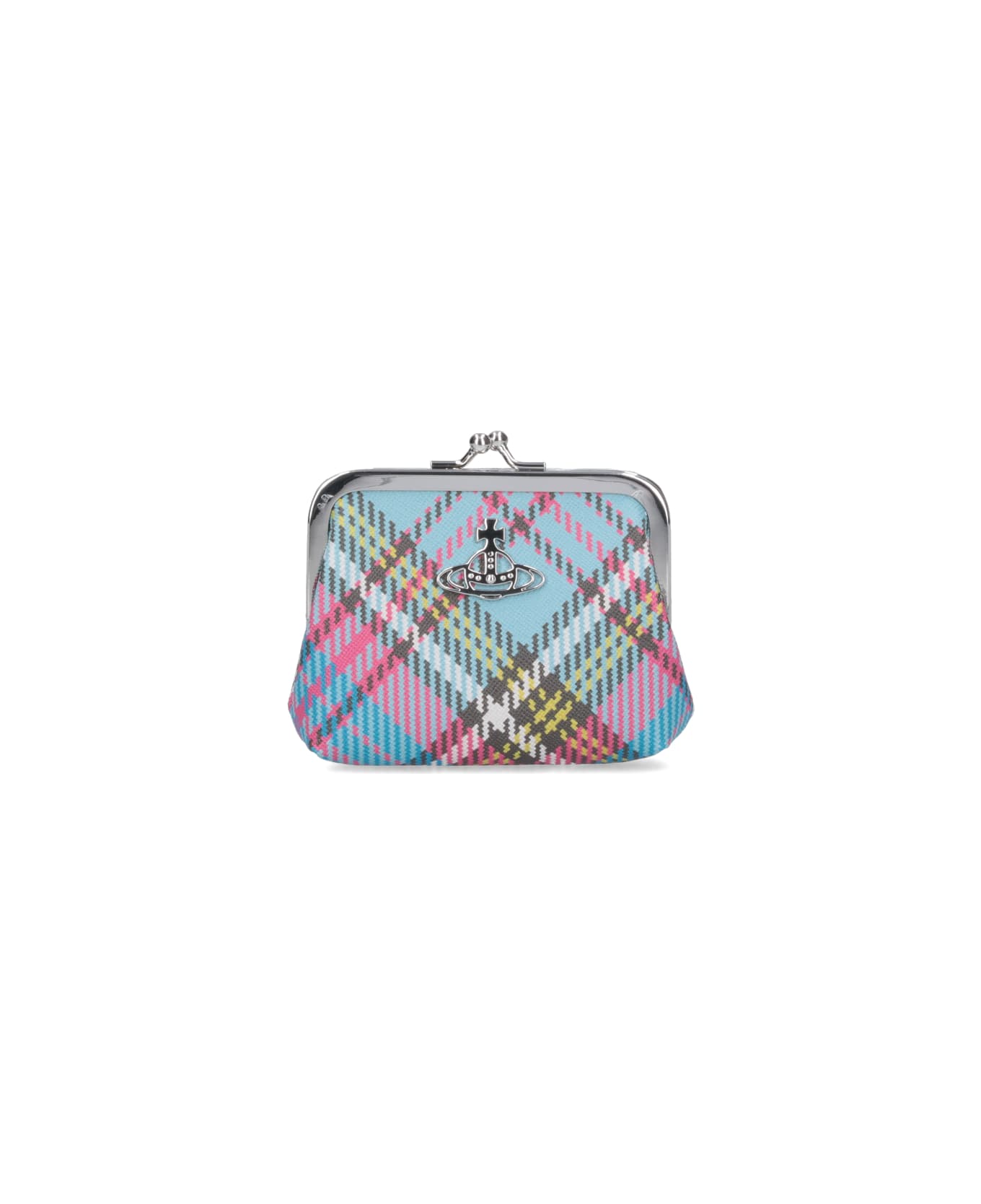 Vivienne Westwood Tartan Check coin purse in eco-leather with multicolored tartan pattern, silver metal details, clutch strap, logo appliqué on the front, and single inner compartment. Composition: 100% Leather