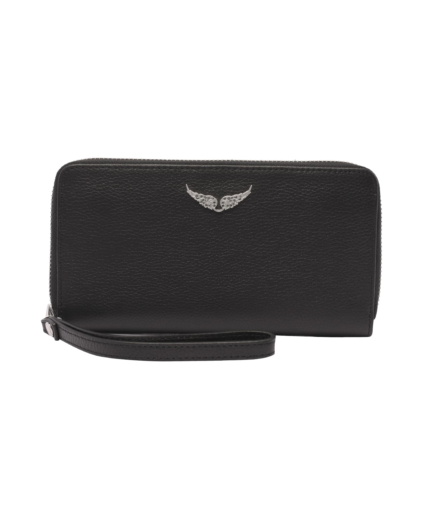 Zadig&Voltaire black Zv Inititale wallet, zip closure, 12 slots, 3 sections, hand strap