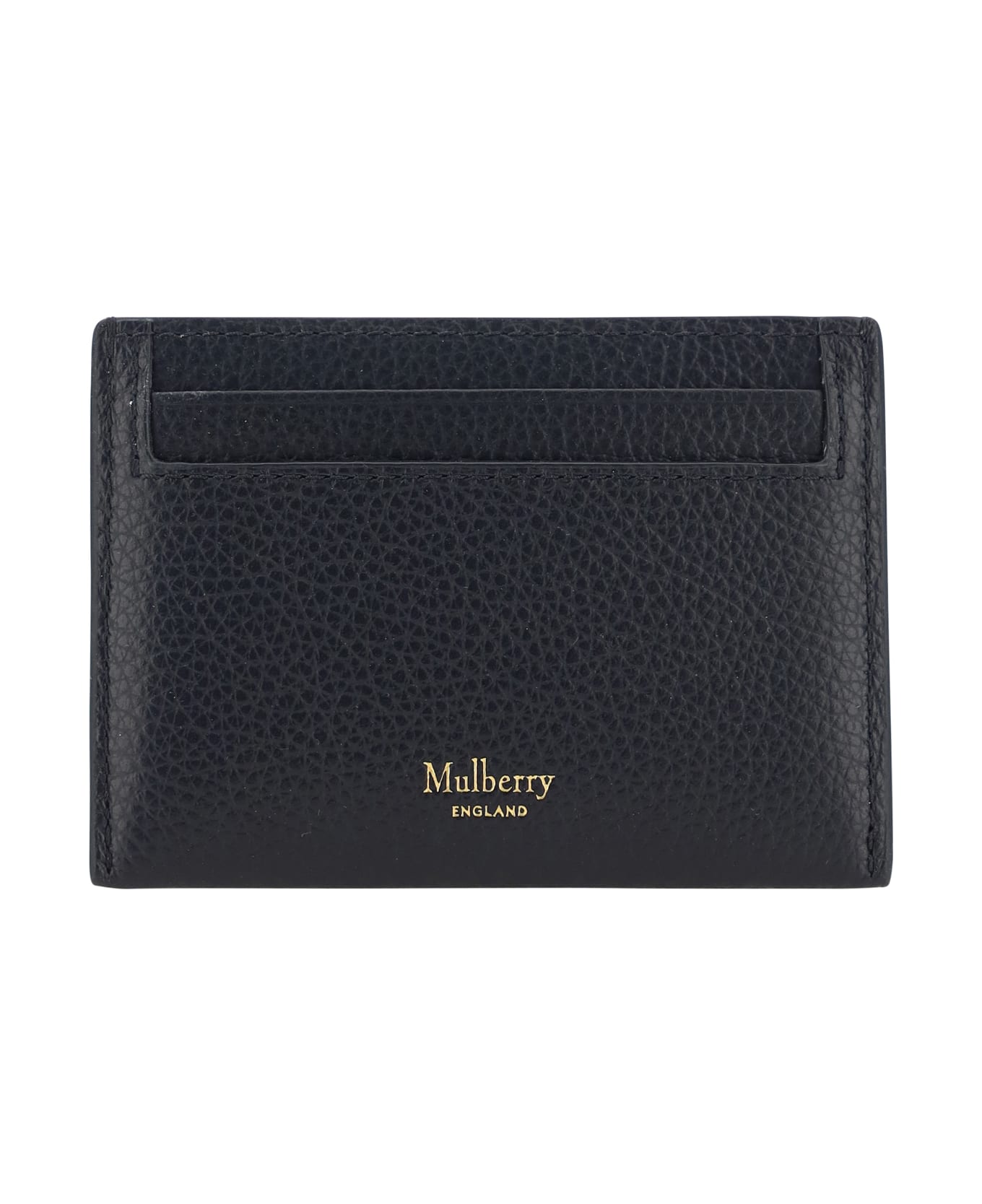 Black Continental Card Holder from Mulberry Calfskin continental card holder by mulberry, card slots on front and back, iconic brand monogram printed in contrast on front, contrasting brand logo on back.