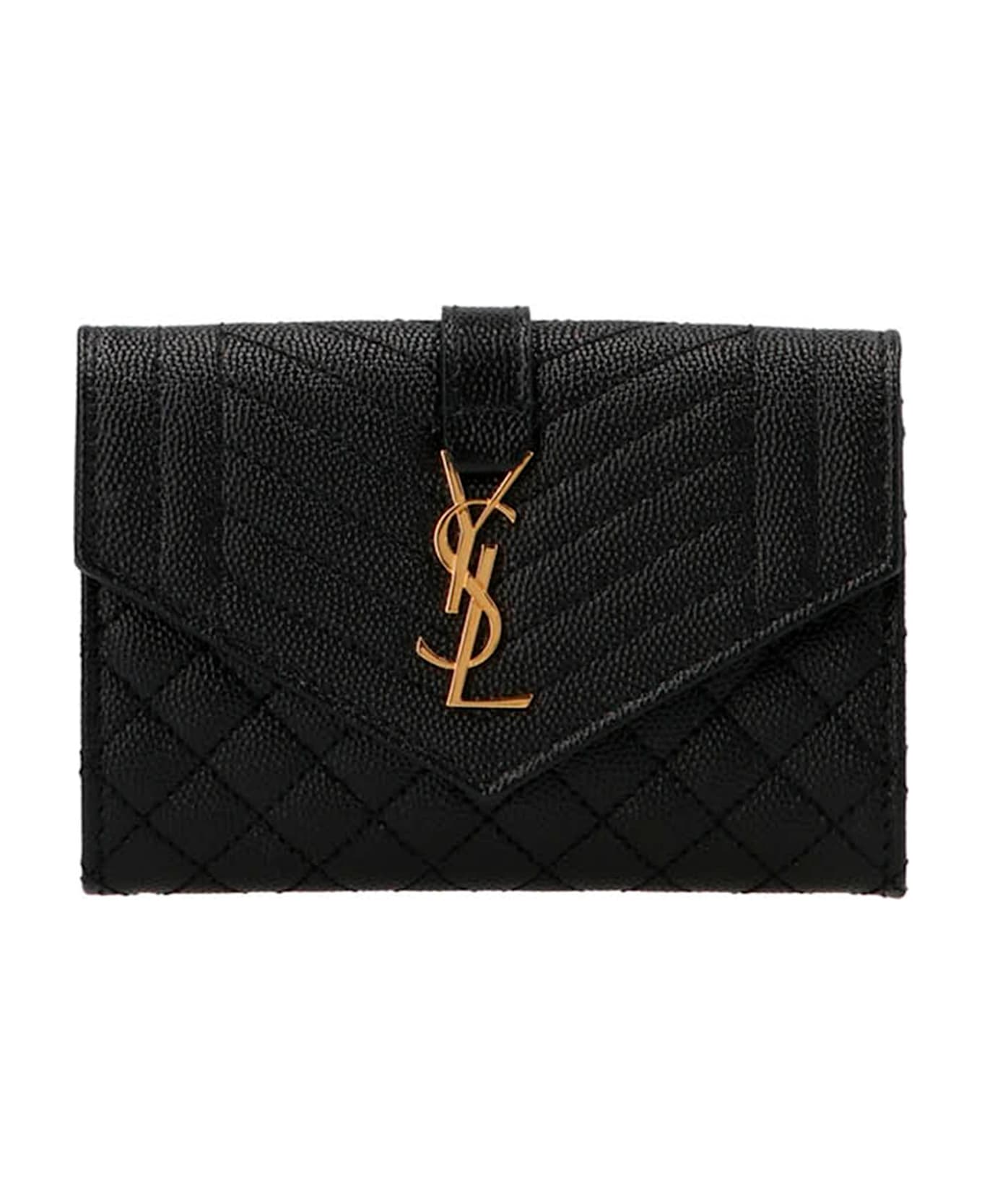 Small 'Envelope' wallet in grain de poudre matealssè leather with gold monogram logo. Composition: 90% calfskin leather 10% brass