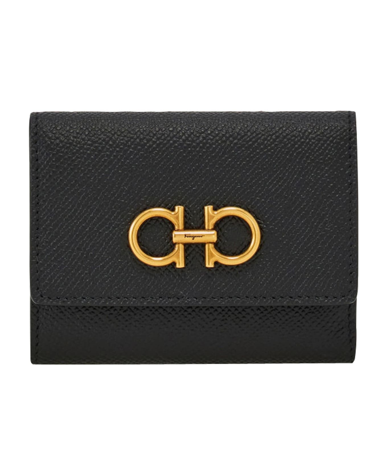 Ferragamo black Gancini trifold wallet, clip closure, 4 slots, one compartment for banknotes, zip purse Composition: 100% Calf Leather