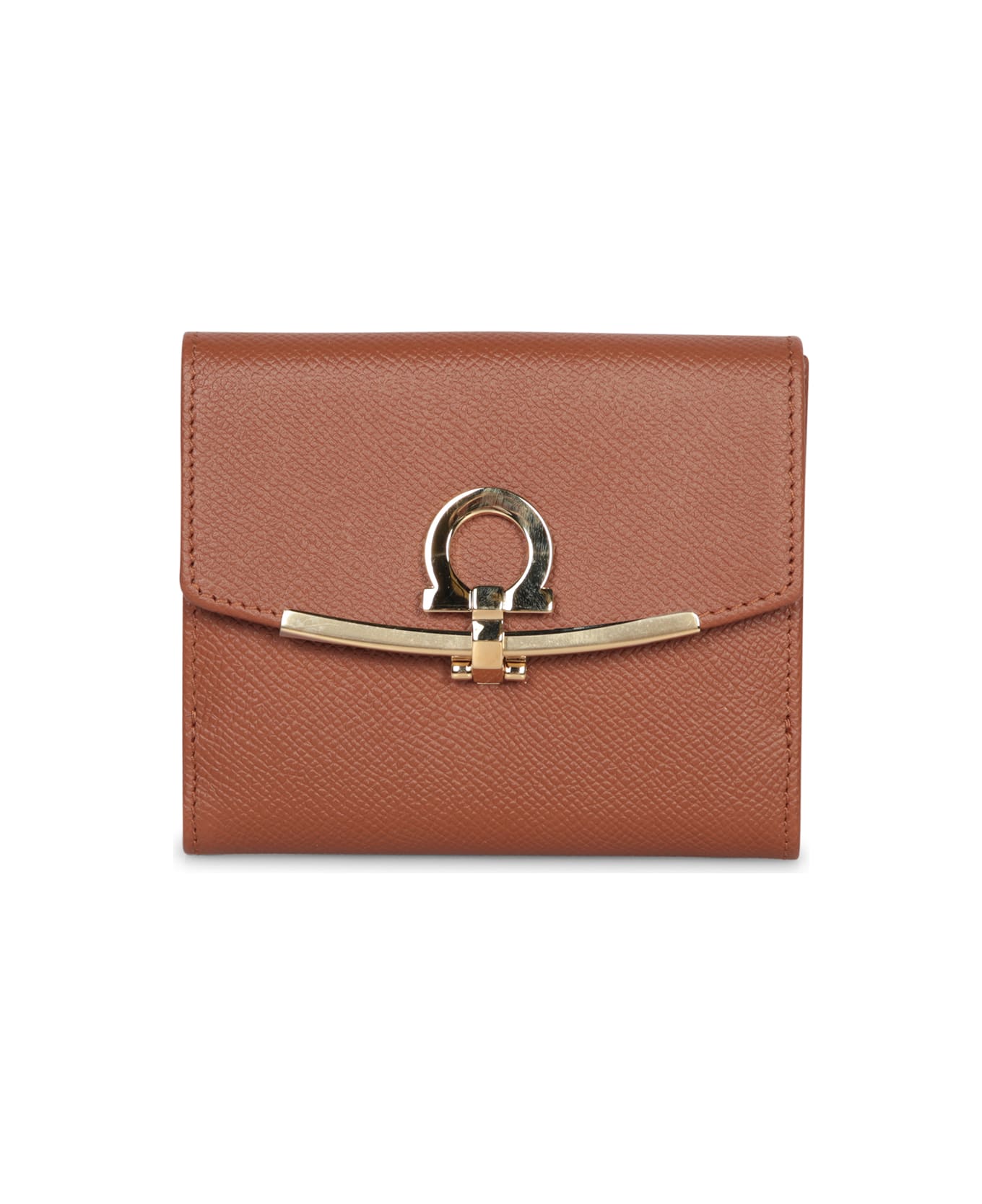 Crafted from high-quality leather, this elegant Ferragamo wallet is distinguished by its iconic golden Gancino clasp, adding a touch of sophisticated elegance.