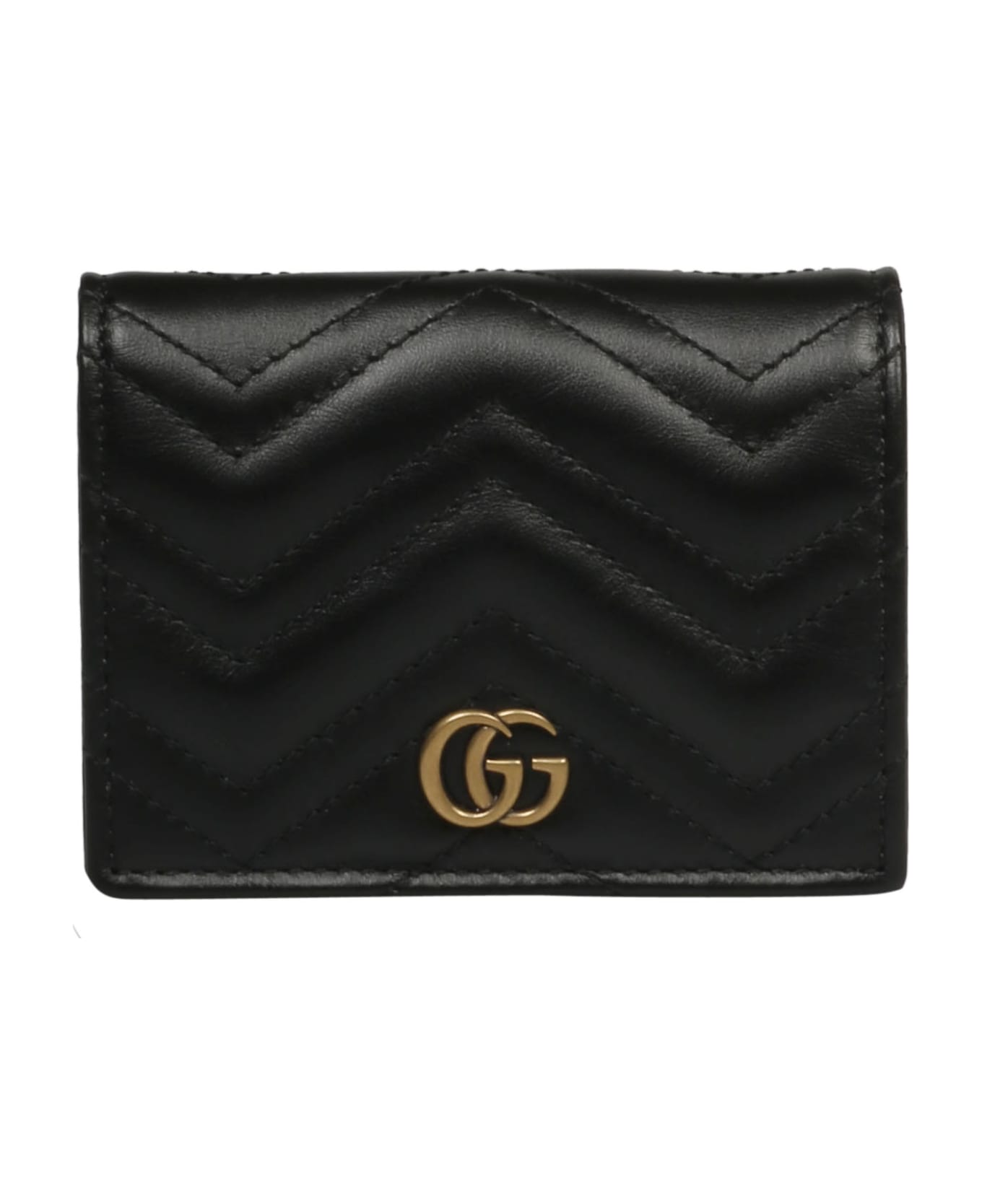 GG Marmont matelassè leather card holder by Gucci. Wallet with chevron motif and GG detail on the back.