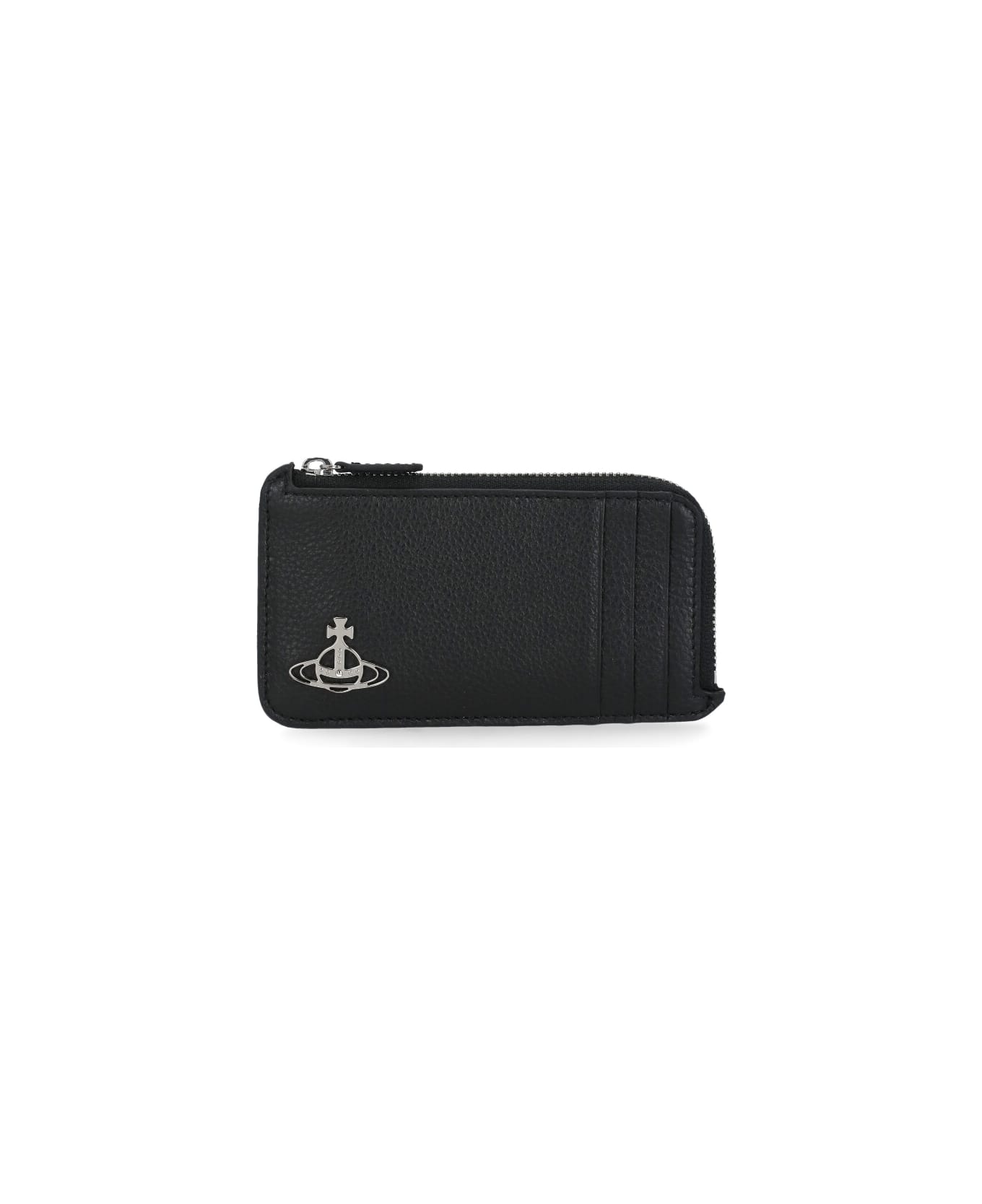 - Black Vivienne Westwood cow leather for woman - Three front card holder pockets - One principal compartment with zip fastening - Five rear card holder pockets - Front tone on tone Orb plaque Composition: 100% Cow Leather