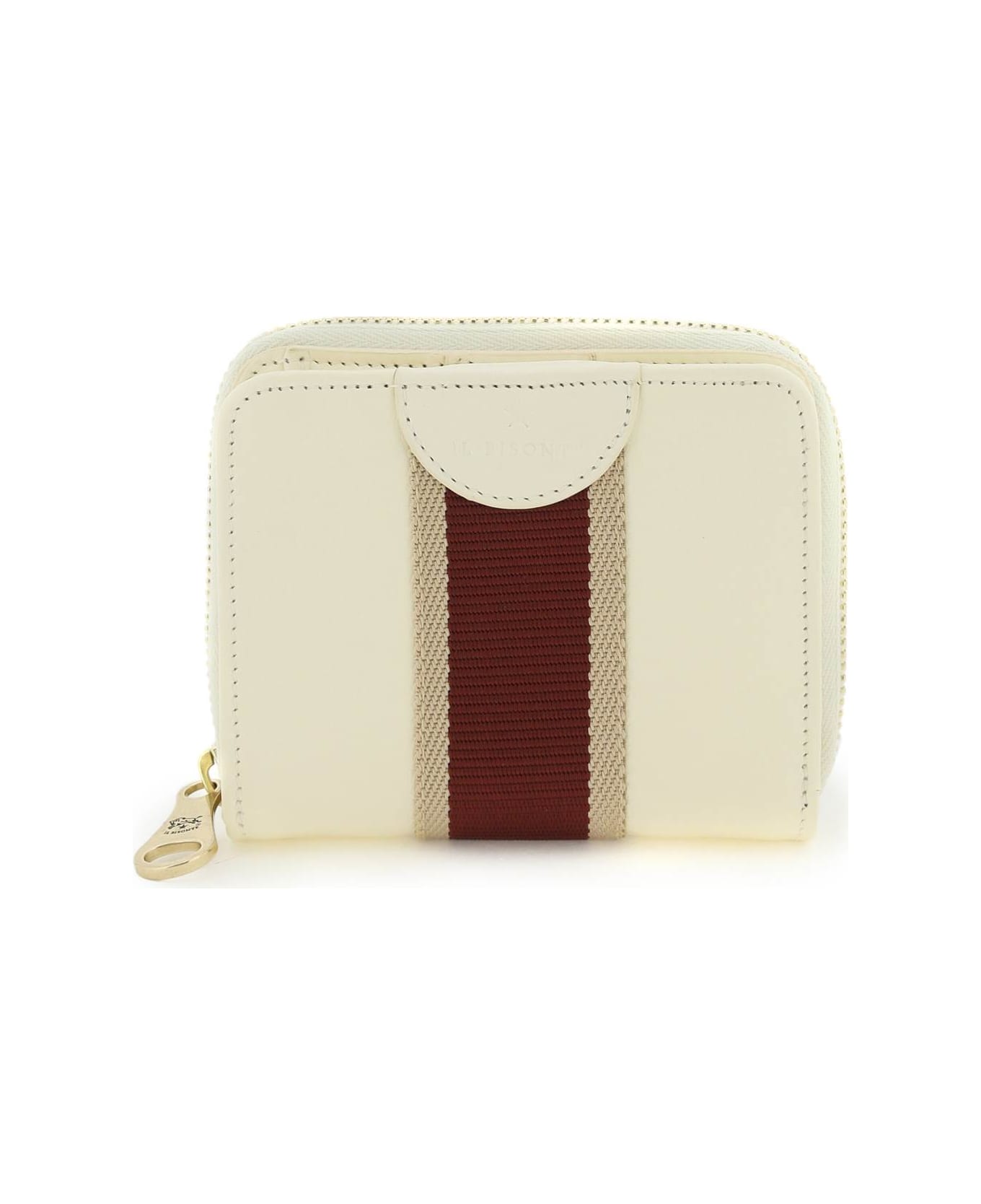 Wallet by Il Bisonte crafted in leather volonata with two-tone ribbon appliqué. Snap-button closure, bill compartment, six credit card slots, two slit pockets and zippered coin compartment.