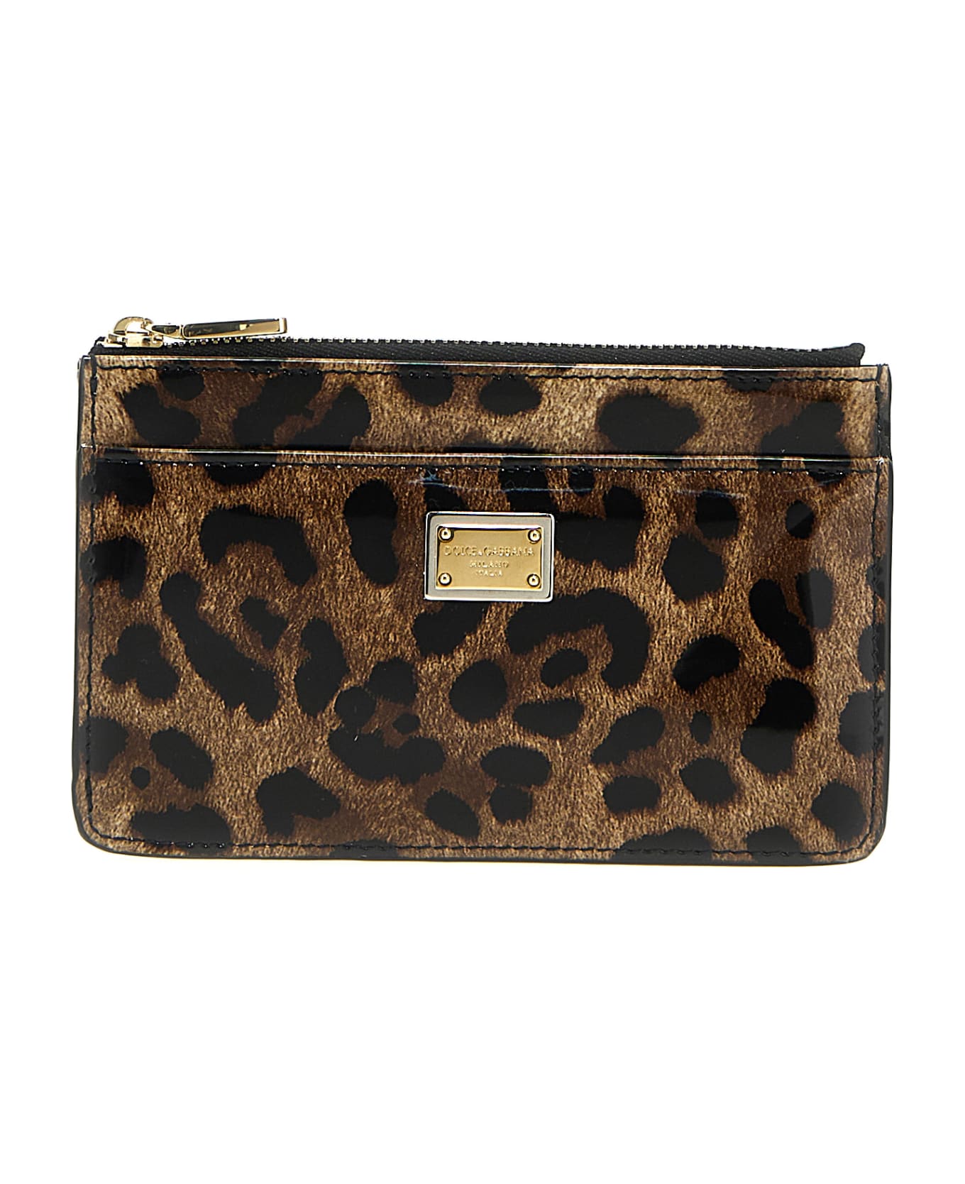 Leopard card holder with an all-over shiny print, a zip and a logo. Composition: 100% calf leather (bos taurus)