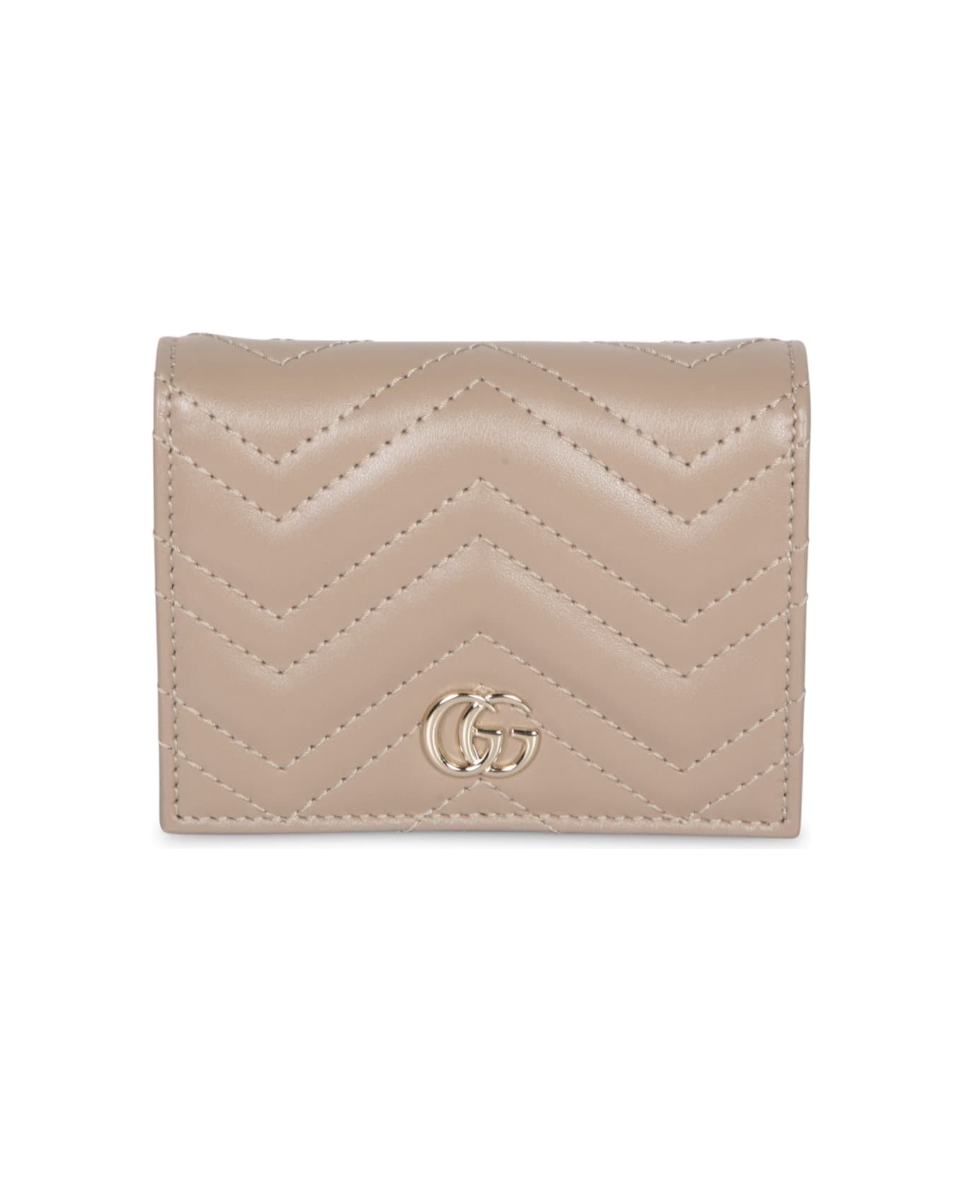 Elegance and functionality merge in this Gucci Marmont wallet crafted in soft beige leather. The sophisticated design is completed with meticulous details like the Chevron motif and the iconic gold-toned GG metal logo. Composition: 100% Leather