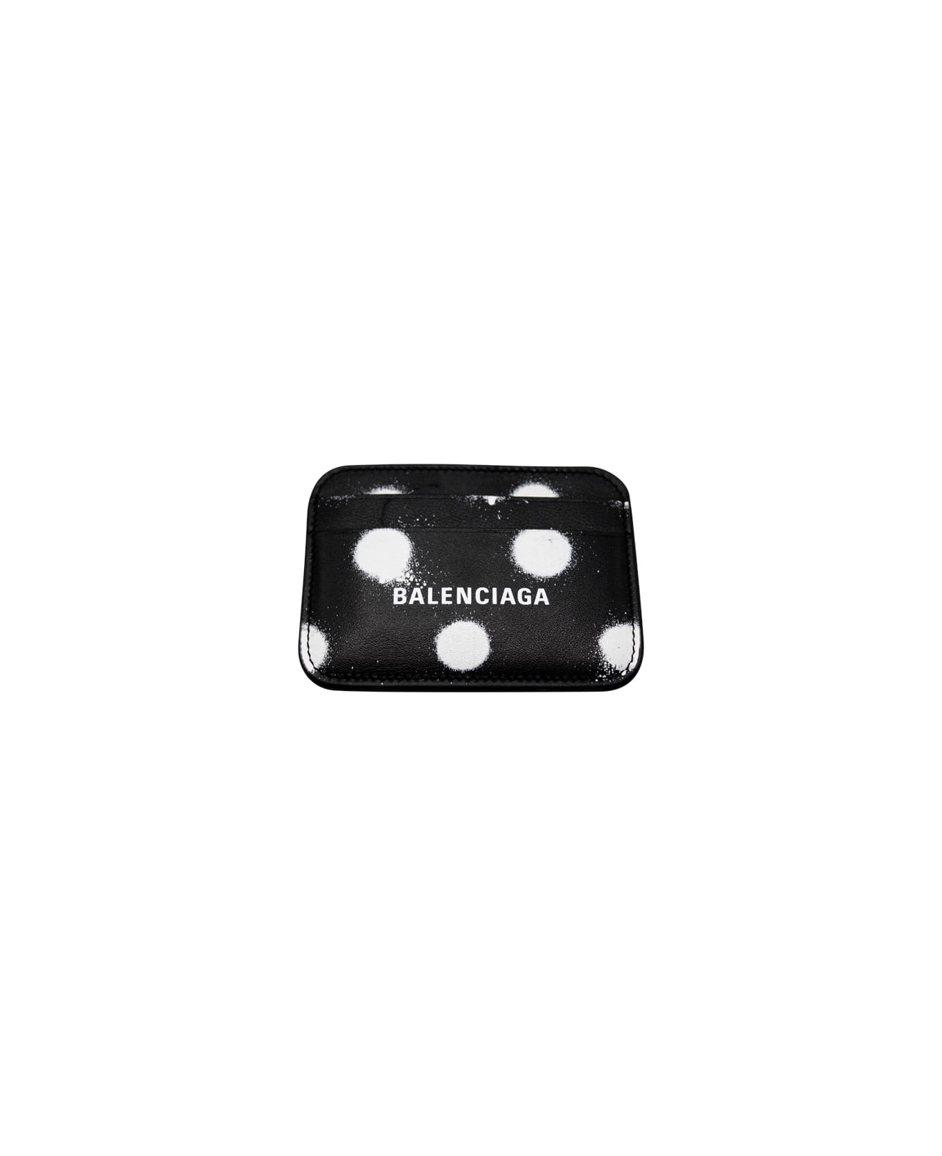 Balenciaga Mini card holder in black and white sprayed polka dots printed smooth calfskin.