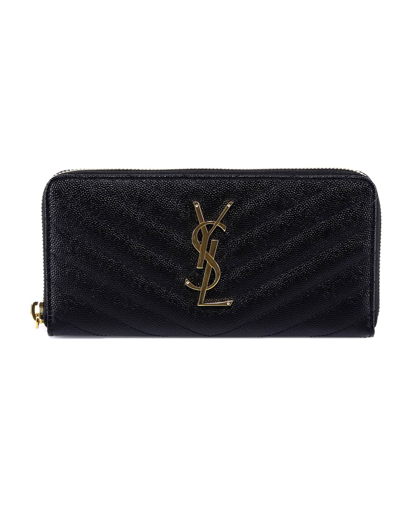 Matelassé leather wallet with metal monogram