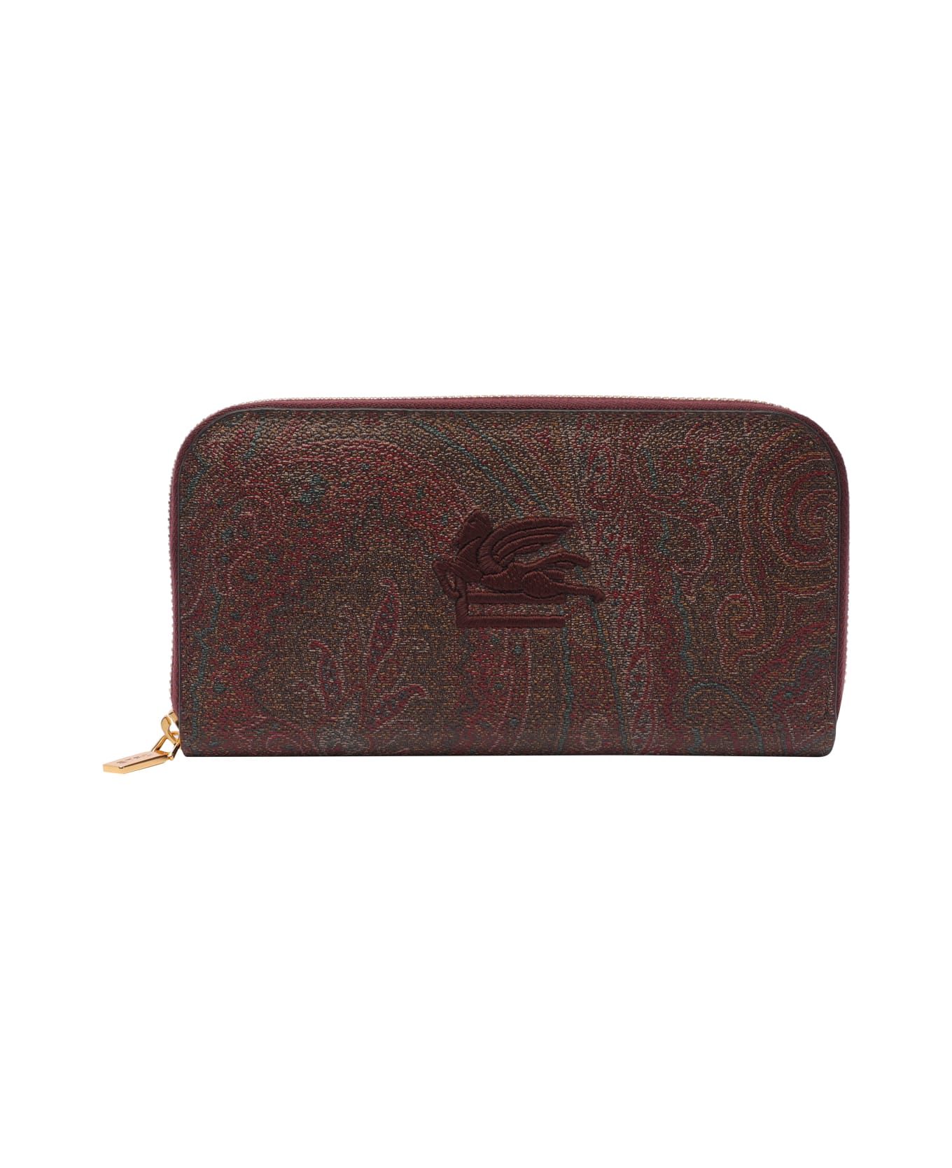 Etro bordeaux Pailey wallet, zip closure, 2 inner open pocket, 12 slots, zipped chain holder, frontal Pegaso logo Composition: 76% Cotton, 24% Polyester