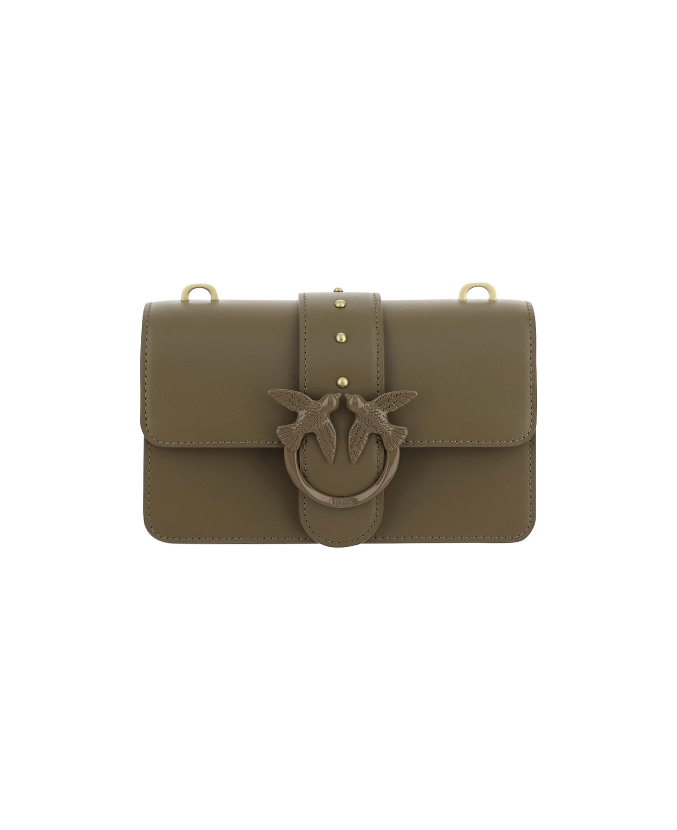 Calfskin Love Mini Icon Maxy Chain Bag by Pinko, leather pod and small metal studs applied on front, iconic metal buckle Love Birds in tone color, partition closure with zip and leather wall pocket inside, maxi chain bold customized shoulder strap, second removable leather shoulder strap with small hooks.