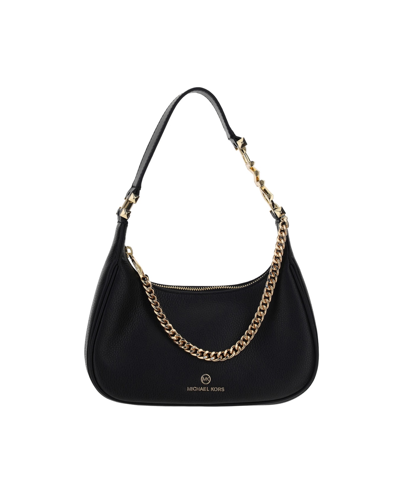 Piper bag by michael kors, hammered design, top shoulder strap with chain detail and double all-gold plated chain strap, iconic brand monogram applied in contrasting embossing on front, top zipper closure, iconic brand monogram applied at base of shoulder strap, single interior compartment, interior welt pocket.