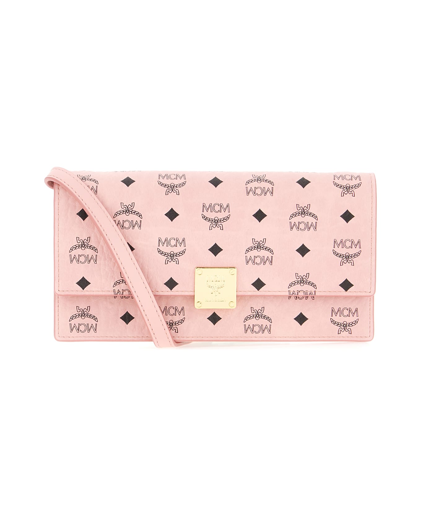 Wallet realized in coated canvas characterized by Visetos motif print on the entire surface enriched by metal logoed detail at the front. -Detachable leather shoulder strap -Snap button closure -A slit pocket at the back -Interior with a slit pocket, a zip pocket and four credit card slots