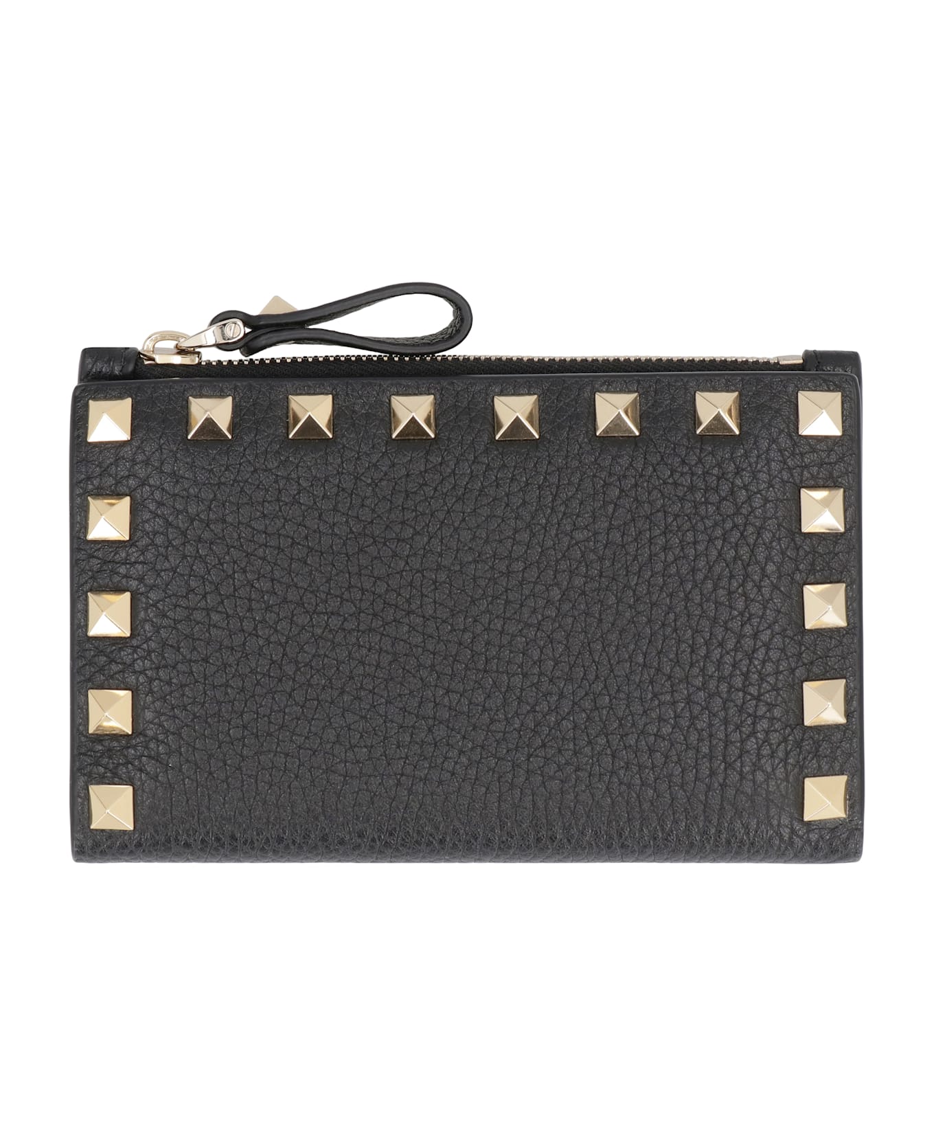 Pebbled calfskin item decorative gold-tone metal studs snap button closure one zipped coin purse two internal flat pockets eight card slots leather lining gold-tone metal hardware width: 14 cm height: 9 cm depth: 2 cm 100% calf Composition: 100% % Calf