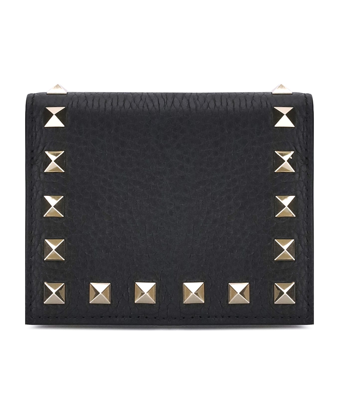 The valentino garavani rockstud wallet is an elegant accessory with a strong character, ideal for those seeking style and functionality in a compact format. made of fine grained leather, it stands out for its unmistakable profile decorated with the brand's iconic rockstud studs. the bifold model features six card slots, a banknote compartment and a practical zippered coin compartment, offering perfect space organization. the interior snap-button closure ensures security and practicality.
