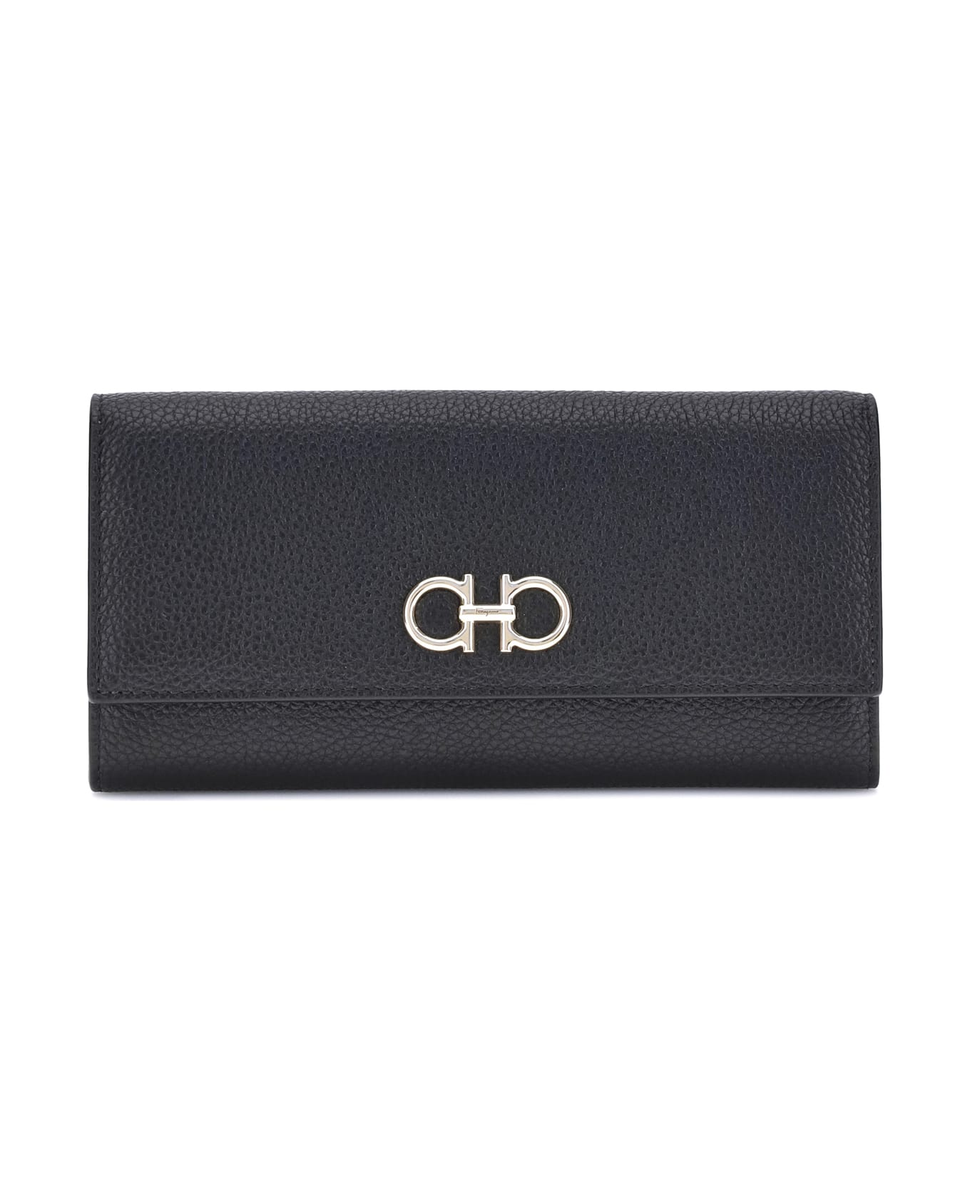Ferragamo wallet made of grained leather features a removable chain strap for dual functionality. the model features a front flap with snap-button closure and the iconic three-dimensional gancini applied detail. inside, it features two compartments with card slots and a zippered slot pocket to better organize personal items with style and elegance. Composition: 100% % Calf Leather Bos Taurus