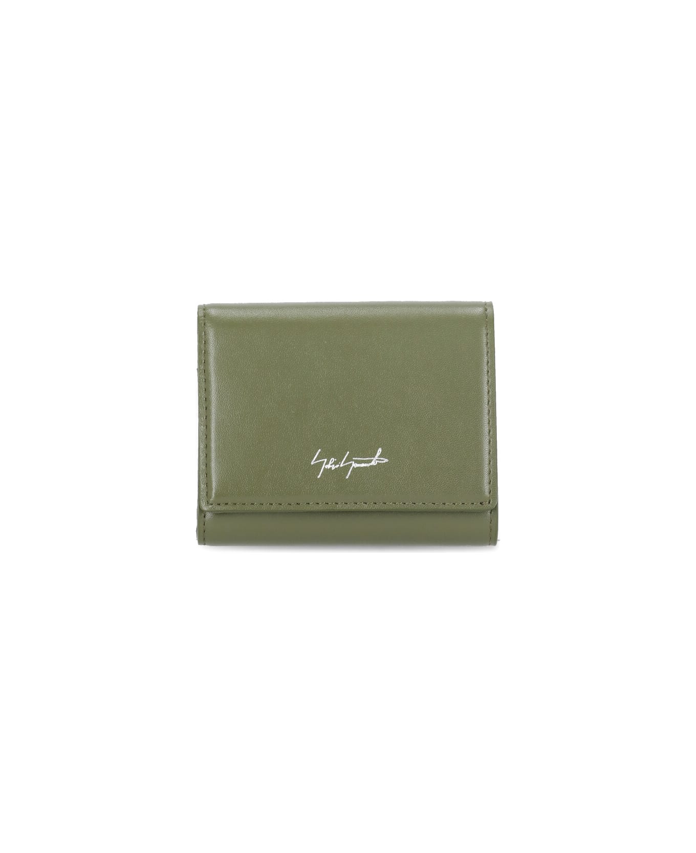 - Green Discord Yohji Yamamoto smooth leather wallet for woman - One internal cash holder - Four internal card holder - One internal coin holder - Front contrasting color logo - Internal tone on tone imprinted logo - Front snap button fastening