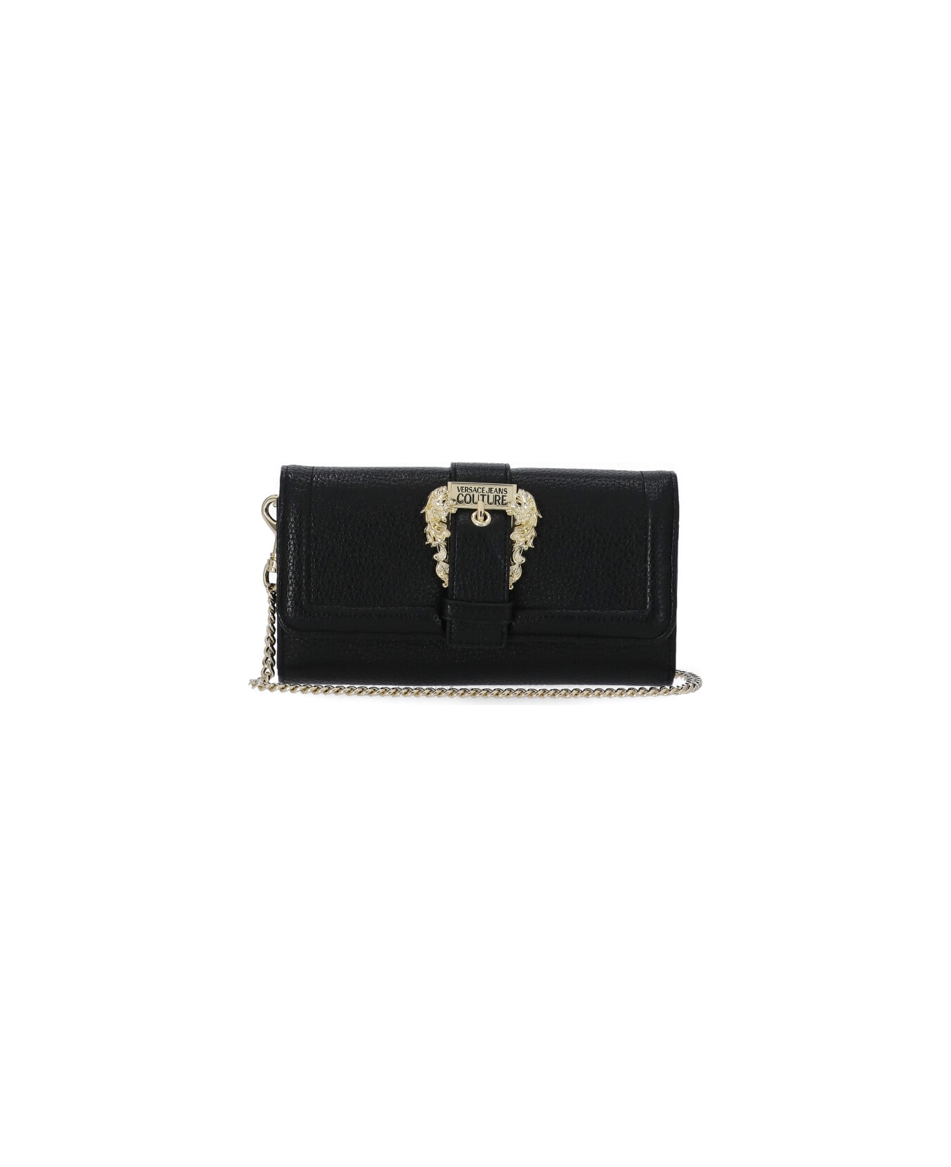 - Black Versace Jeans Couture for woman - Three compartments - One zip pocket - Nine welt card pockets - One removable chain shoulder strap - Front Baroque buckle with logo