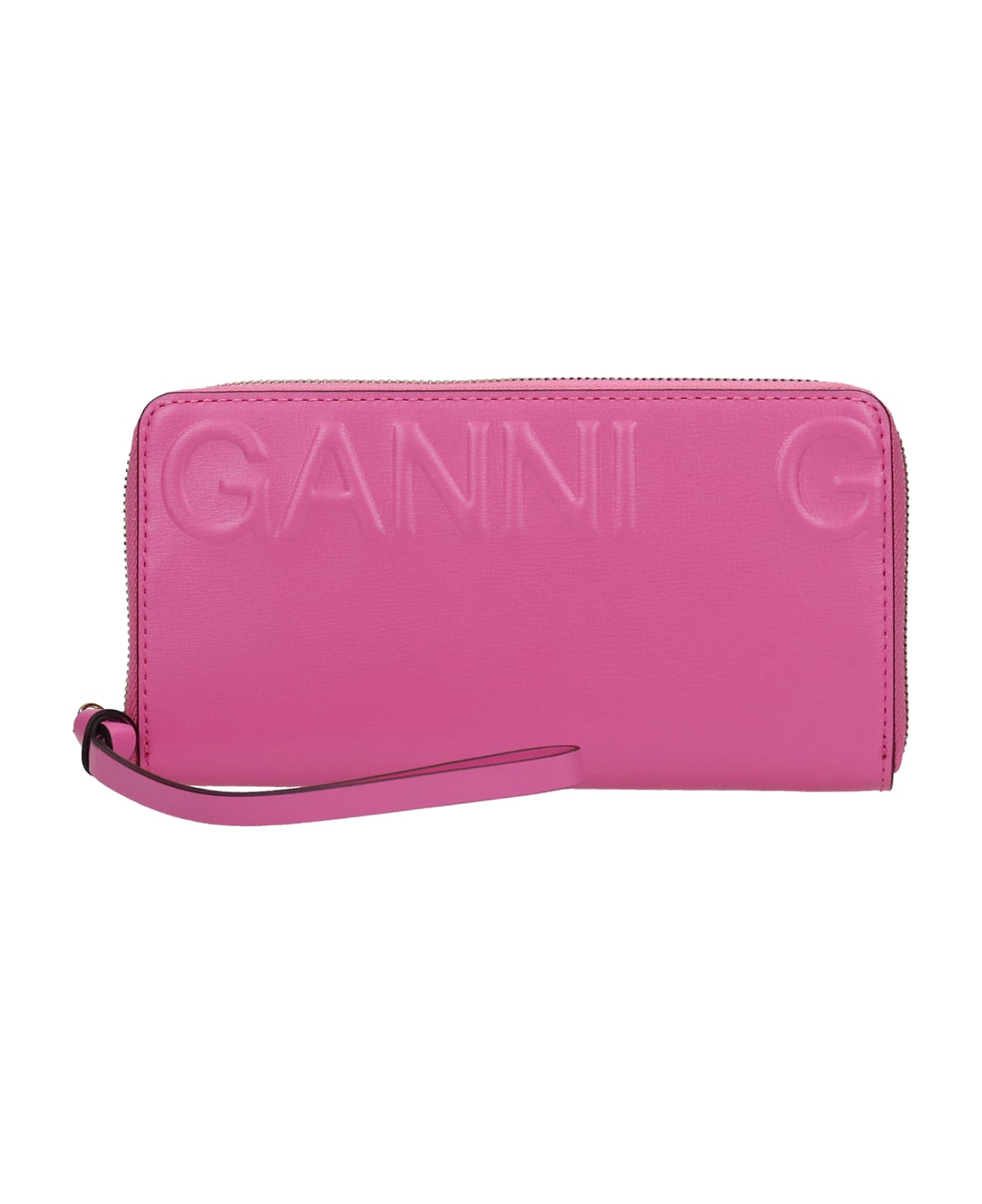 Wallet in rose-pink leather, zip clousure, interior compartments, engraved logo, Made in China, Height 100 mm, Width 190 mm