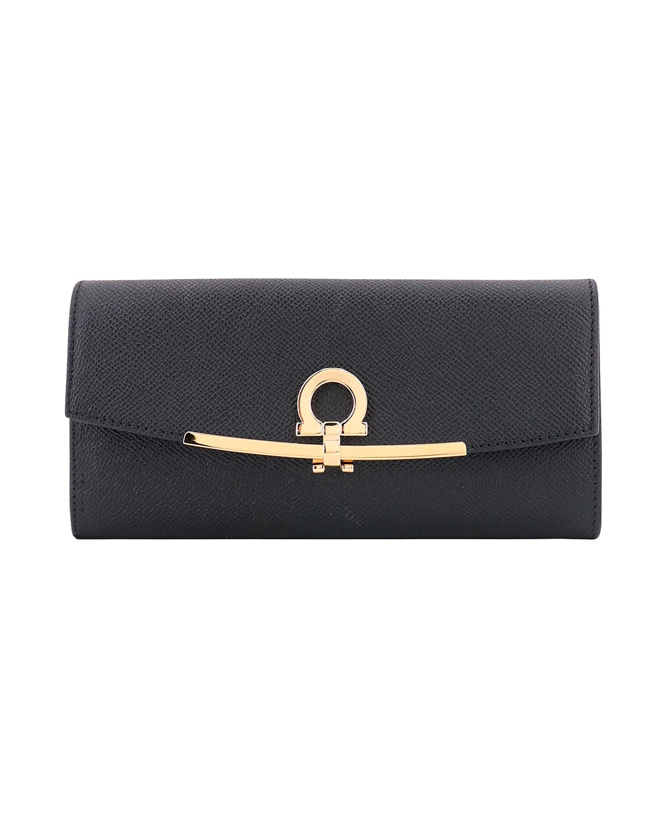 Hammered leather wallet with iconic Gancini metal closure - Closure With Flap And Hook - Two Compartments For Banknotes - One Pocket With Zip - Made In Italy - Leather