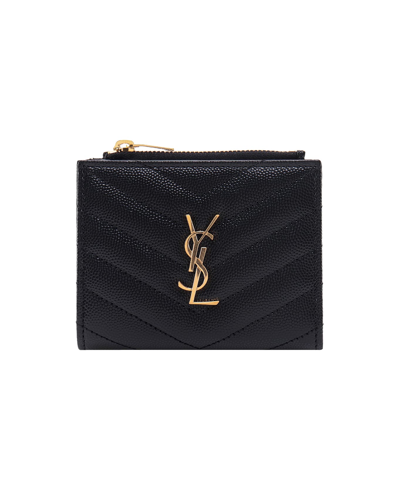 Leather wallet with metal monogram - Five Compartments For Credit Cards - Coins Pocket With Zip - One Compartment For Banknotes - Made In Italy - Leather