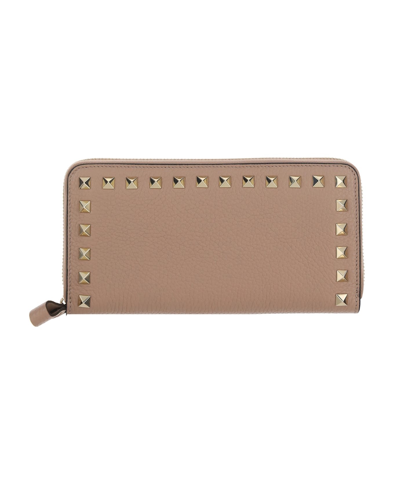 Valentino garavani's leather wallet is a stylish and functional accessory. it features a lap zipper closure that offers security, while the iconic rockstud studs applied on the perimeter add a distinctive and bold touch. the brand's iconic contrasting monogram on the front enhances the design. inside, there are three compartments to better organize personal belongings, along with a zippered coin purse for added convenience. a wallet that combines style and functionality in a sophisticated way.