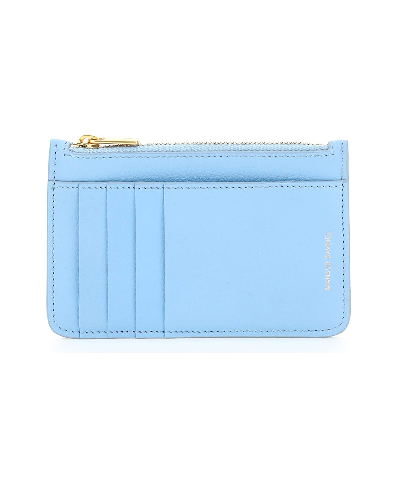 Mansur Gavriel crafted in soft calf leather with gold-tone logo print on front, four credit card and a slit pocket on front and a central compartment with gold-tone metal zip closure. Leather lining.