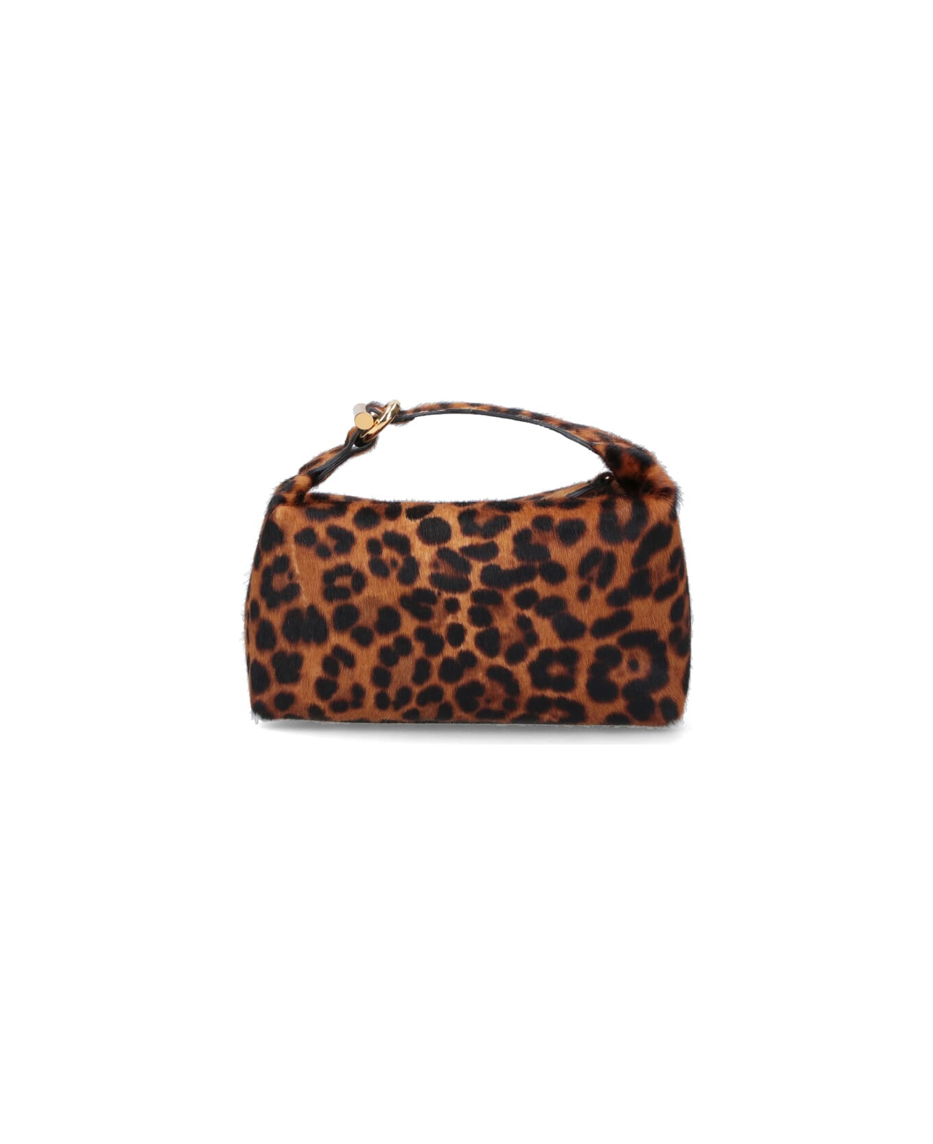 Liffner mini Pillow bag in brown calf leather with leopard pattern, top handle, gold metal hardware detail, zip closure, inner flat pocket, main inner compartment.