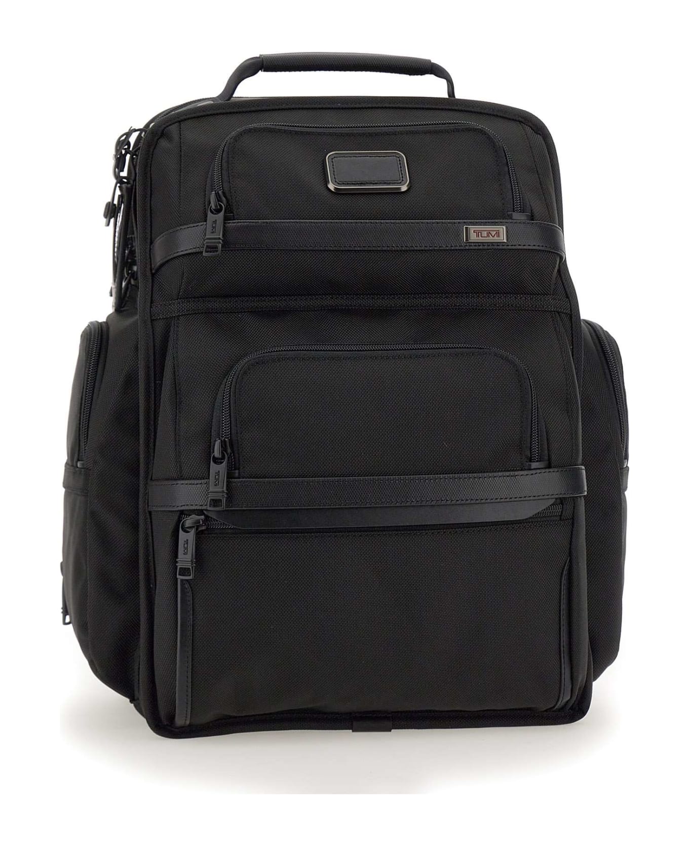 "Alpha Brief Essential Backpack" Tumi, black. Internal details: padded tablet pocket,three open pockets, zip pocket,three pockets for electronic devices, three card holder pockets,pen loops, keychain strap, TUMI Tracer® code External details: zip closure,laptop compartment (up to 15 inches), two front pockets with all-round zip,front bellows pocket with vertical zip,two side pockets,adjustable padded shoulder straps, top handle, add-a-Bag sleeve for adding to suitcase. Dimensions: 43 x 20 x 30cm WEIGHT: 1. 5kg
