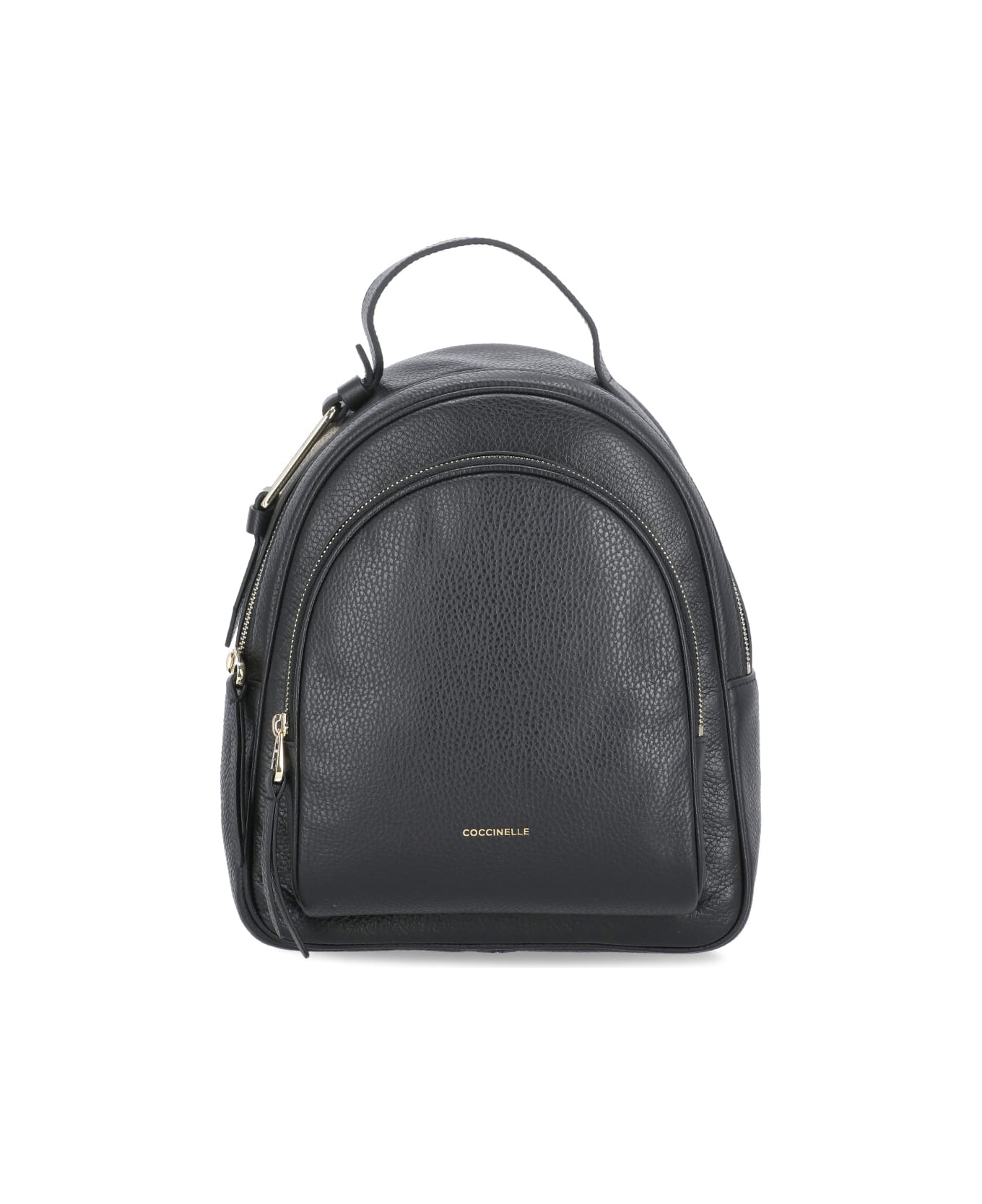 - Black Coccinelle pebbled leather backpack for woman - Front golden logo - Two compartments with zip fastening - One handle - Two adjustable shoulder straps