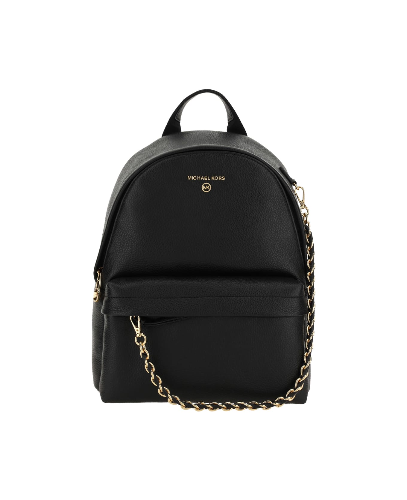 Calfskin slater backpack by michael kors, front zippered patch pocket, gold-plated chain attached to slider, zippered top opening, adjustable shoulder straps, plaque with iconic brand monogram appliqu n front, garnet leather design.