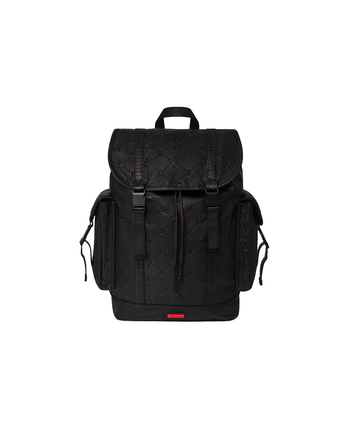 24/7 Monte Carlo backpack by Sprayground made of black faux leather, decorated with all-over embossed logo. Lined interior with zip slip pocket, drawstring closure and adjustable buckles. Maxi side pockets with buckles, top handle and adjustable shoulder straps with logo. Measures 36x46x17 cm.