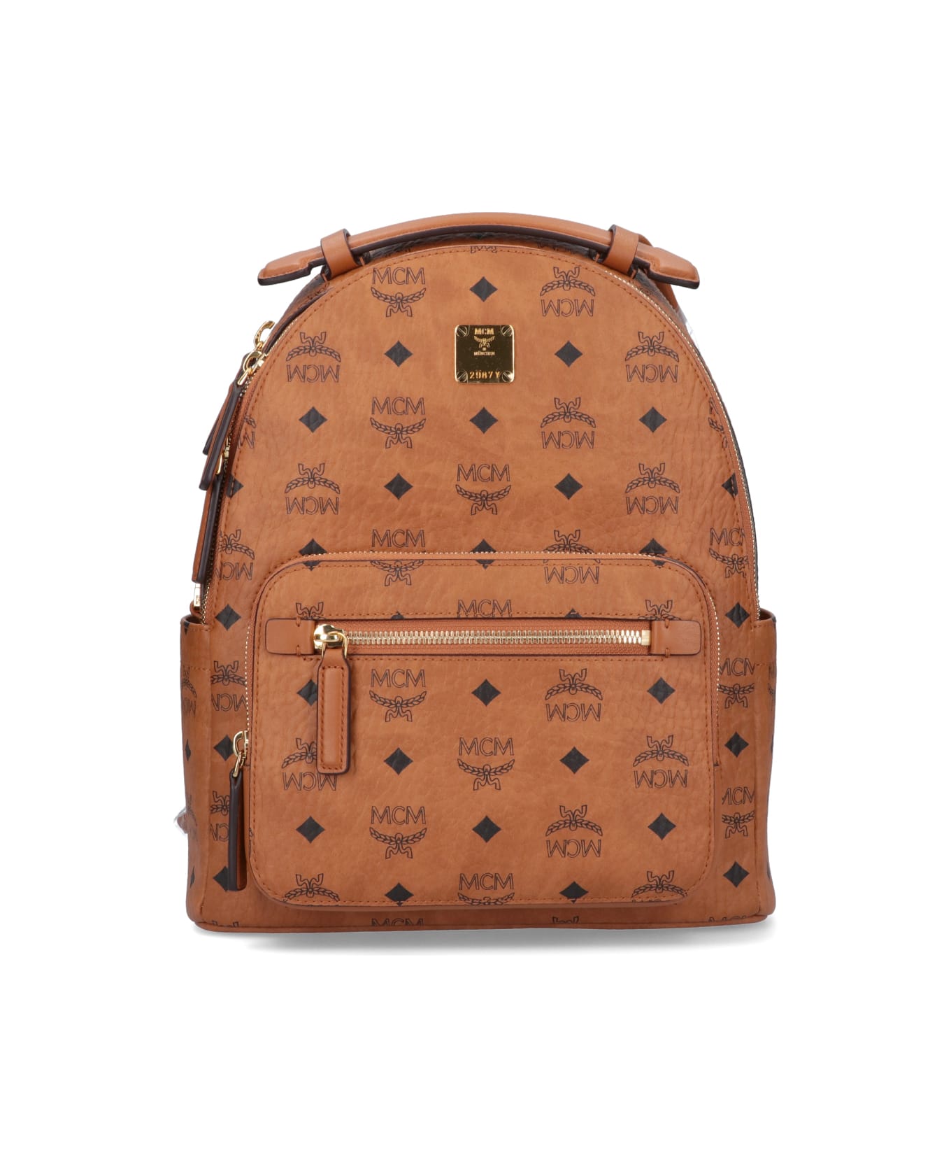 MCM Stark 32 Visetos backpack, handle, zip closure, front zip pocket, side slit pockets, adjustable padded shoulder straps, allover logo. Composition: 83% Synthetic Fiber, 17% Cotton