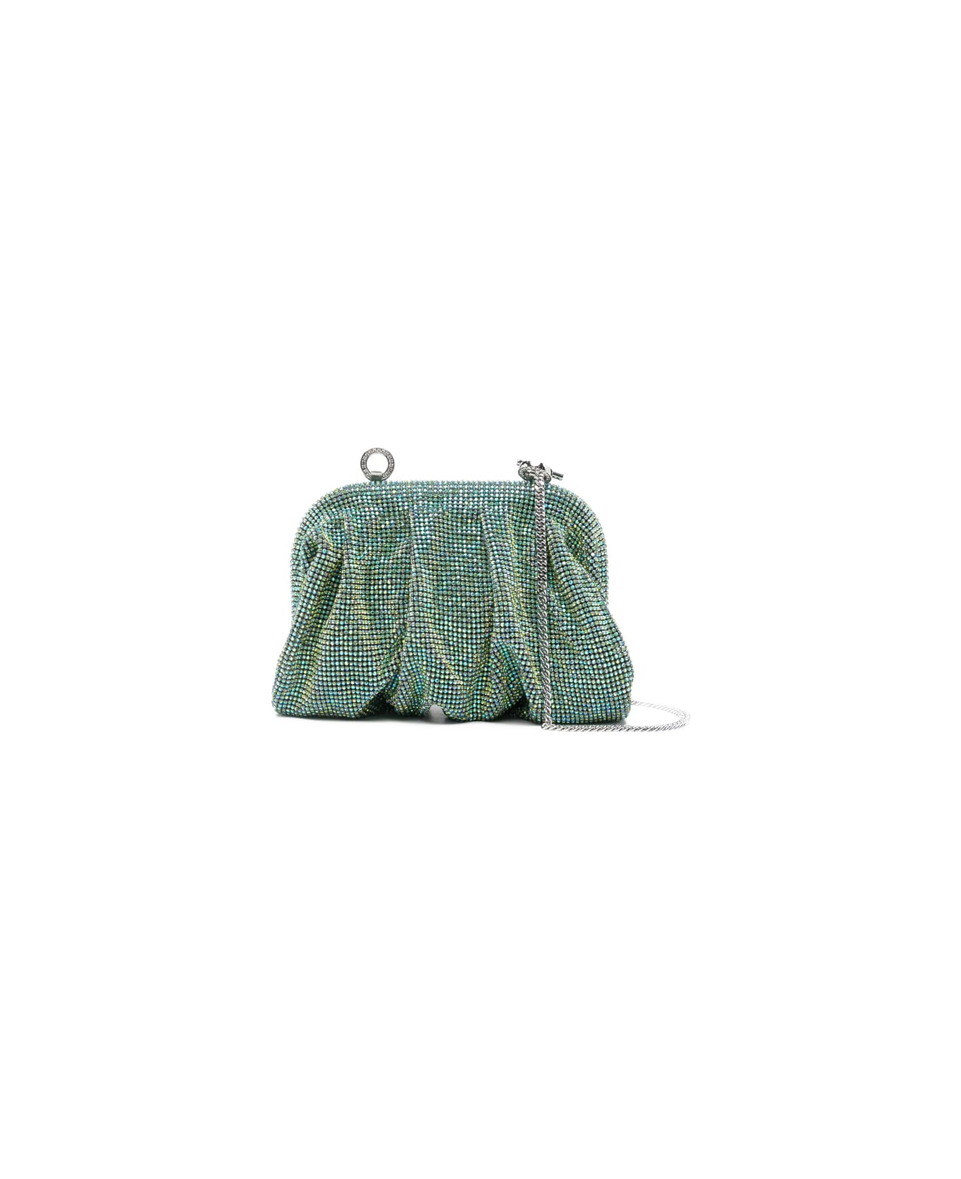 green chain detail embellished gathered detail clasp fastening